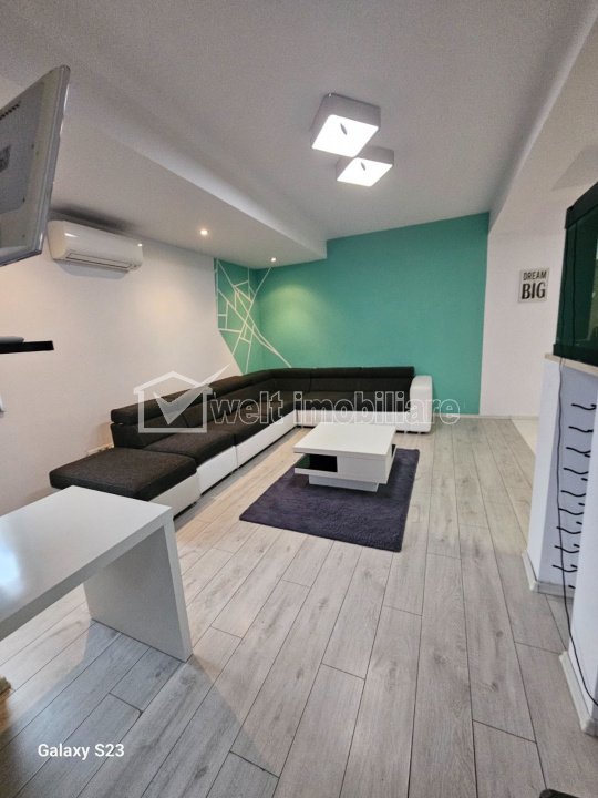 + 8 + 5 Comision 0% Caracteristici Tip locuinta Apartament Tip imobil bloc de apartamente Numar camere 2 Numar bucatarii 1 Numar bai 1 Parcare da Supr. construita 79 m2 Suprafata utila 64 m2 Compartimentare Semidecomandat Confort Marit Etaj 1/3 Disponibilitate imediat Descrierea Apartamentului 0% comision Welt imobiliare ofera spre vânzare un apartament modern, conceput pentru cei care apreciază confortul, intimitatea și un ambient rafinat. Apartamentul are o suprafață 64 MP și este situat la etajul I, beneficiind de o orientare mixta, ceea ce asigură lumină naturală pe tot parcursul zilei. Spațiile interioare sunt bine proporționate, luminoase și amenajate cu atenție la detalii, punând accent pe funcționalitate. Zona de zi, formată din living cu bucătărie open space, creează un spațiu primitor, potrivit atât pentru activitățile zilnice, cât și pentru socializare. Dormitorul oferă un ambient confortabil și intim. Compartimentarea semidecomandată mai include un hol de acces, o baie și balcon. Exista si un loc de parcare exterior inclus in pret, ca si cota de teren in proprietate. Pentru mai multe informații sau pentru programarea unei vizionări, vă rugăm să ne contactați! ID Proprietate - P54602 Utilitati, Finisaje Utilitati generale: Electricitate, Apa, Gaz, CanalizareSistem de incalzire Centrala termicaClimatizare Aer conditionat Finisaje: Izolatii termice (Bloc izolat termic), Pereti (Vopsea lavabila, Faianta), Podele (Parchet, Gresie), Usa intrare (Metal) Dotari: Bucatarie (Mobilata, Utilata), Contorizare (Apometre, Contor gaz), Dotari imobil (Interfon) Vecinatati si puncte de interes in zona USAMV, UMF Amenajare strazi (Asfaltate, Betonate), Iluminat stradal, Mijloace de transport in comun Numar vizualizari: 52 Actualizat: 2026-04-20 20:59:15