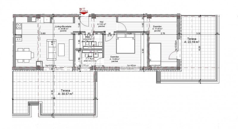 Apartament 3 camere, Borhanci, terase 53 mp, acces facil spre Gheorgheni Cluj-Napoca, Borhanci 3 camere • 71.07 m2 • 2 bai • etaj 3/2 • semidecomandatnecesita renovare pret vanzare negociabil 168.228 € + TVA + 8 + 5 Vandut Caracteristici Tip locuinta Apartament Tip imobil bloc de apartamente Numar camere 3 Numar bucatarii 1 Numar bai 2 Numar terase 2 Numar garaje 1 Parcare nu Supr. construita 85 m2 Suprafata utila 71.07 m2 Compartimentare Semidecomandat Confort 1 Etaj 3/2 Construit cu Caramida An constructie 2017 Disponibilitate Imediat Descrierea Apartamentului Avem placerea de a va prezenta un nou concept imobiliar modern - o noutate pe piata imobiliara a Clujului, in ceea ce priveste stilul de viata, beneficiile oferite viitorilor locuitori, dar si prin solutiile tehnice moderne si materialele folosite pentru constructii. Ansamblul este construit pe un teren in suprafata de 21.000 mp, in zona cea mai verde a orasului, ofera o panorama memorabila asupra orasului, zone de relaxare aerisite, pasaje pietonale si locuri de parcare. Atmosfera civilizata, siguranta, confortul, serviciile oferite (spatii comerciale, gradinita etc.), in cadrul ansamblului reprezinta premisele pentru a forma o adevarata comunitate. Ansamblul cuprinde 64 de apartamente dispuse in 4 imobile cu lift, avand regim de inaltime mic (S+P+2E+ER). Locuintele exclusiviste cuprind o serie de detalii, pe langa cele descrise mai sus, insa ne dorim sa le descoperim impreuna intr-o viitoare intalnire. Avem garantia ca veti avea oportunitatea de a descoperi surprize placute, ca noi proprietari ai unui apartament de lux. In continuare vor mai fi o serie de detalii si specificatii ale fiecarui apartament si al intregului ansamblu. Apartamentul este situat la etajul retras, este compartimentat in living cu bucatarie, 2 dormitoare, 2 bai si o terasa finisata. Apartamentul este unul functional datorita spatiilor inteligent compartimentate si a suprafetei folosite la maximum, neavand spatii neutilizate. Specificatii tehnice: - zidarie din caramida Porotherm cu termosistem din vata bazaltica (nu polistiren) - pereti exteriori placati cu caramida aparenta - terase si spatii comune finisate cu materiale de cea mai buna calitate - garaje subterane cu boxe - geamuri termopan cu 3 sticle si 6 camere - lifturi silentioase, cu cabina si usi din inox ID Proprietate - P6668 Utilitati, Finisaje Utilitati generale: Electricitate, Apa, Gaz, Canalizare, Cablu TVSistem de incalzire Centrala termica, Calorifere Finisaje: Izolatii termice (Bloc izolat termic), Stare interior (Semifinisat), Ferestre cu geam termopan (PVC), Usa intrare (Metal) Dotari: Alte spatii utile (Boxa la subsol), Contorizare (Apometre, Contor gaz), Dotari imobil (Interfon, Lift, Curte comuna) Vecinatati si puncte de interes in zona Zona de case si vile Amenajare strazi (Asfaltate) Numar vizualizari: 8945 Actualizat: 2023-07-07 07:44:42