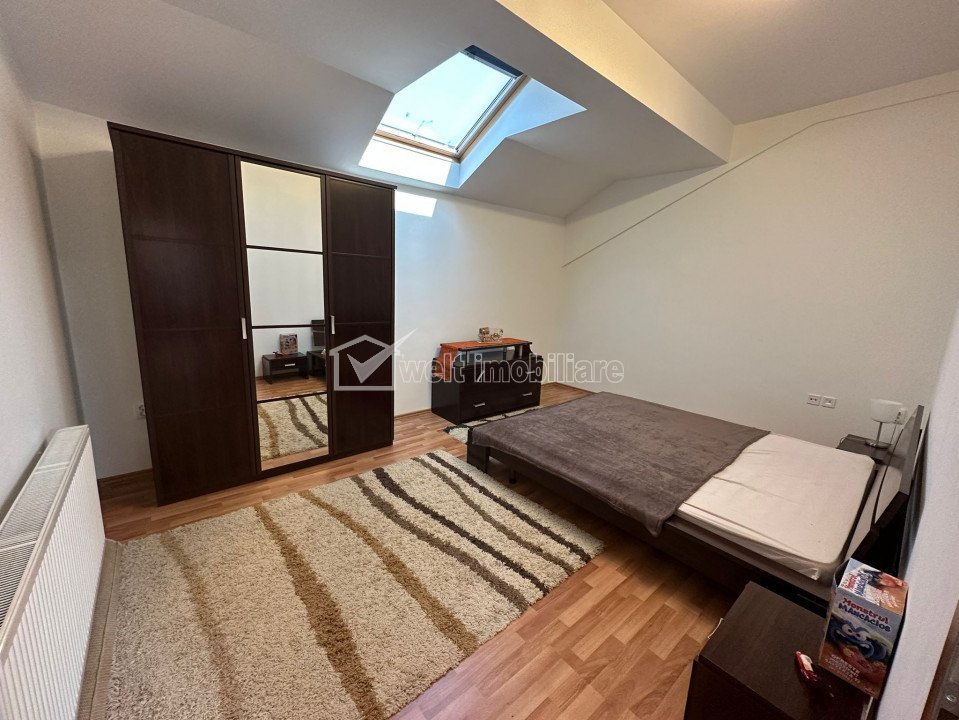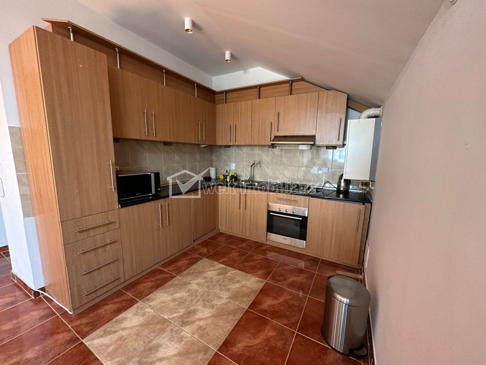 Caracteristici Tip locuinta Apartament Tip imobil bloc de apartamente Numar camere 3 Numar bucatarii 1 Numar bai 1 Numar garaje 1 Parcare da Supr. construita 110 m2 Suprafata utila 91 m2 Compartimentare Semidecomandat Confort Marit Etaj 3/3 Construit cu Caramida An constructie 2008 Disponibilitate imediat Descrierea Apartamentului Welt Imobiliare va propune spre achizitie un apartament la mansarda(tavanele au o inaltime de inceput de 2,3 m si ajung pana la 3,5), cu o suprafata generoasa de 91 mp, intr-un imobil Zona, una in plina dezvoltare, dispune de multiple facilitati, cum ar fi scoala privata, banci, farmacii, sala de fitness, magazine, locuri de joaca pentru copii, iar accesul spre centrul orasului este facilizat de mijloacele de transport in comun, ale caror statii se afla la 3 minute de mers pe jos. Cei 91 mp utili sunt compartimentati dupa cum urmeaza: -1 living cu bucatarie deschisa; -1 baie; -2 dormitoare; Apartamentul dispune de finisaje moderne, cu bun gust, care se evidentiaza prin: -parchet laminat in dormitoare si living; -gresie in bucatarie si baie; -pereti cu vopsea lavabila; -faianta in baie si pe peretele de la bucatarie; -geamuri termopan; -geamuri tip velux; -usa metalica la intrare; -usi celulare in interior; Confortul termic este asigurat de centrala proprie si instalatie cu calorifere. Odata cu apartamentul se vinde si un loc de parcare in subteranul imobilului si un loc de parcare exterior cu CF separat la pretul de 15000 Euro Apartamentul este liber de sarcini, situatia juridica este clara si este disponibil imediat! Pentru mai multe detalii sau programarea unei vizionari va invitam sa ne contactati! ID Proprietate - P38040 Utilitati, Finisaje Utilitati generale: Electricitate, Apa, Gaz, Canalizare, Cablu TVSistem de incalzire Centrala termica, CalorifereClimatizare Aer conditionat Finisaje: Izolatii termice (Bloc izolat termic), Pereti (Vopsea lavabila, Faianta), Podele (Parchet, Gresie), Usa intrare (Metal), Usi interior (Celulare) Numar vizualizari: 1801 Actualizat: 2024-01-23 13:18:05