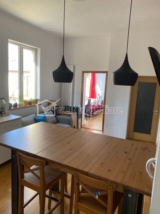 Apartament 3 camere, la 1 minut de Parcul Central, 74 mp, view spre Cetatuie Cluj-Napoca, Centru 3 camere • 71 m2 • 2 bai • etaj 1/1 • semidecomandatfinisat • mobilat complet pret vanzare 195.000 € + 7 + 4 Vandut Caracteristici Tip locuinta Apartament Tip imobil bloc de apartamente Numar camere 3 Numar bucatarii 1 Numar bai 2 Parcare nu Supr. construita 92 m2 Suprafata utila 71 m2 Compartimentare Semidecomandat Confort 1 Etaj 1/1 Construit cu Beton An constructie 1930 Disponibilitate imediat Descrierea Apartamentului Welt Imobiliare are placerea de a va prezenta un apartament cochet, situat la etajul 1 intr-un imobil cu regim de inaltime P+1+Pod, construit in perioada interbelica, din caramida plina, dotat cu interfon, izolat termic si expunere Nord-Vest, cu o priveliste splendida spre Cetatuie. Zona, este una care dispune de multiple facilitati, cum ar fi: Parcul Central(la 1 minut de mers pe jos) Piata Mihai VIteazul(la 2 minute de mers pe jos), Piata Muzeului(la 3 minute de mers pe jos.). De asemena in proximitate se mai gasesc scoli, facultati, banci, magazine, restaurante, cafenele, sli de fitness si multe altele pe care va invitam sa le vedeti la fata locului. Cei 71 mp utili sunt compartimentati dupa cum urmeaza: -1 hol -1 baie -1 wc -1 bucatarie cu loc de luat masa -2 dormitoare La acestea se adauga un balcon inchis folosit pe post de birou. Apartamentul dispune de finisaje moderne care se evidentiaza prin: -pereti cu vopsea lavabila -faianta in bai -imitatie de caramida in living si dormitor -parchet laminat in camere -gresie in bai -geamuri termopan cu tamplarie PVC -usa metalica la intrare -usi celulare in interior. Confortul termic este asigurat de centrala prorie si instalatie cu calorifere. Apartamentul se vinde mobilat si utilat cu tot ce este prezentat in fotografii. Pentru mai multe detalii sau programarea unei vizionari va invitam sa ne contactati! ID Proprietate - P38291 Utilitati, Finisaje Utilitati generale: Electricitate, Apa, Gaz, Canalizare, Cablu TVSistem de incalzire Centrala termica, Calorifere Finisaje: Izolatii termice (Bloc izolat termic), Pereti (Vopsea lavabila, Faianta), Podele (Parchet, Gresie), Usa intrare (Metal), Usi interior (Celulare) Dotari: Alte spatii utile (WC Serviciu), Bucatarie (Mobilata, Utilata), Contorizare (Apometre, Contor gaz), Mobilat (Complet), Dotari imobil (Interfon), Electrocasnice (Masina de spalat rufe, Frigider, Masina de spalat vase, TV, Cuptor microunde, Hota) Vecinatati si puncte de interes in zona Parcul Central, Piata Mihai Viteazul, Piata Unirii Amenajare strazi (Asfaltate), Iluminat stradal, Mijloace de transport in comun Numar vizualizari: 1894 Actualizat: 2024-01-23 13:18:05