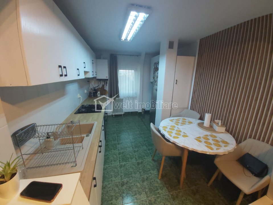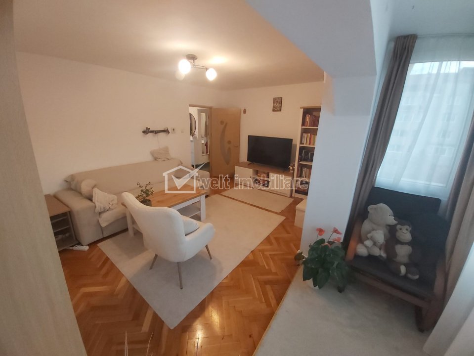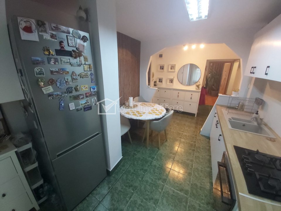 Apartament cu 3 camere, 2 bai, zona Titulescu Cluj-Napoca, Gheorgheni 3 camere • 72 m2 • 2 bai • etaj 4/4 • decomandatfinisat • mobilat complet pret vanzare negociabil 225.000 € + 17 + 14 Vandut Caracteristici Tip locuinta Apartament Tip imobil bloc de apartamente Numar camere 3 Numar bucatarii 1 Numar bai 2 Parcare nu Supr. construita 80 m2 Suprafata utila 72 m2 Compartimentare Decomandat Confort 1 Etaj 4/4 An constructie 1986 Disponibilitate imediat Descrierea Apartamentului Apartament decomandat cu 3 camere, situat în cartierul Gheorgheni, aproape de Centru. Suprafață utilă de 64 mp, la care se adaugă două balcoane închise (8 mp), integrate în camere. Compartimentare: living, două dormitoare, bucătărie cu hol, două băi. Dispune de beci, inclus în CF si acces la uscator, pentru depozitare. In acest moment apartamentul are parcare cu abonament de la Primarie. Locatie buna – 10 minute de mers pe jos până la Piața Cipariu, stație de autobuz în fața blocului. Dotat cu aer condiționat Daikin, centrala termică Viessmann, geamuri termopan. Apartamentul are orientare S-V, este deosebit de luminos si se afla intr-o stare foarte buna. Pret negociabil. ID Proprietate - P51166 Utilitati, Finisaje Utilitati generale: Electricitate, Apa, Gaz, CanalizareSistem de incalzire Centrala termica, Calorifere Finisaje: Pereti (Vopsea lavabila), Podele (Parchet, Gresie), Ferestre cu geam termopan (PVC) Dotari: Alte spatii utile (Boxa la subsol), Mobilat (Complet), Dotari imobil (Interfon), Electrocasnice (Masina de spalat rufe) Vecinatati si puncte de interes in zona Titulescu Amenajare strazi (Asfaltate), Iluminat stradal, Mijloace de transport in comun Numar vizualizari: 434 Actualizat: 2025-11-19 13:27:54