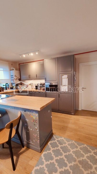 Caracteristici Tip locuinta Apartament Tip imobil bloc de apartamente Numar camere 3 Numar bucatarii 1 Numar bai 1 Numar balcoane 1 Numar garaje 1 Parcare nu Supr. construita 68 m2 Suprafata utila 61 m2 Compartimentare Decomandat Confort 1 Etaj 3/7 Construit cu Caramida An constructie 2018 Disponibilitate imediat Descrierea Apartamentului Welt Imobiliare vinde apartament cu trei camere ultrafinisat in Cluj Napoca, zona Rivus Mall, Complexul Clujana. Apartamentul este situat la etaj intermediar al unui imobil finalizat in anul 2018, izolat termic si ridicat cu materiale de calitate. Are o suprafata de 61mp . Este compartimentat living cu bucatarie ,hol mare spatios, dormitor, dormitor, baie, balcon. Materiale folosite la finisarea apartamentului sunt de calitate iar mobilierul si electrocasnicele incorporate sunt noi. Apartamentul se vinde finisat, mobilat si utilat, dispunând de centrală proprie cu incalzire in pardoseala, plita pe inductie și cuptor electric, hota , masina de spălat vase, frigider. Apartamentul dispune si de o parcăre/garag la subsolul blocului cu CF, care se vinde optional, la pret de 20000 euro. Poate fi achizitionat prin varianta cash sau credit ipotecar. Eliberarea apartamentului se efectueaza la intelegerea intre parti sau cu ramanere in spatiu contra cost. Ideal locuinta de familie sau investitie. Pentru mai multe detalii si programare vizionari, nu ezitati sa ne contactati ID Proprietate - P47618 Utilitati, Finisaje Utilitati generale: Electricitate, Apa, Gaz, CanalizareSistem de incalzire Centrala termica, Incalzire in pardosealaClimatizare Aer conditionat Finisaje: Izolatii termice (Exterior, Bloc izolat termic), Pereti (Vopsea lavabila, Faianta), Podele (Parchet, Gresie), Ferestre cu geam termopan (PVC), Usa intrare (Metal) Dotari: Bucatarie (Mobilata, Utilata), Contorizare (Apometre, Contor gaz), Mobilat (Complet), Dotari imobil (Interfon, Lift, Curte comuna), Electrocasnice (Frigider, Masina de spalat vase, Cuptor microunde, Hota) Vecinatati si puncte de interes in zona Rivus Mall Piata 1 Mai Complex Clujana Amenajare strazi (Asfaltate), Iluminat stradal, Mijloace de transport in comun Numar vizualizari: 246 Actualizat: 2025-05-12 18:11:49