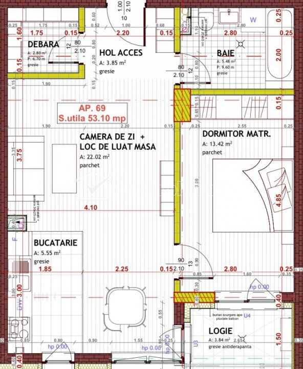 COMISION 0% Proiect nou, Tineretului Floresti Floresti, zona Tineretului 3 camere • 66.15 m2 • 1 baie • etaj 3/6 • decomandatfinisat • nemobilat pret vanzare 124.000 € + 8 + 5 Caracteristici Tip locuinta Apartament Tip imobil bloc de apartamente Numar camere 3 Numar bucatarii 1 Numar bai 1 Numar balcoane 2 Parcare nu Suprafata utila 66.15 m2 Compartimentare Decomandat Confort 1 Etaj 3/6 Construit cu Caramida Disponibilitate imediat Descrierea Apartamentului Va propunem un nou proiect imobiliar situat in cea mai accesibila zona a Florestiului, pe strada Tineretului, in apropierea Somesului. Proiectul este compus din 4 imobile, cu un regim de inaltime de S+P+6E prevazut cu spatii comerciale la parter, spatii verzi, alei pietonale. Blocurile sunt din caramida si sunt prevazute cu centrala termica individuala pe fiecare apartament, incalzire in pardoseala, geamuri tripan, usa antiefractie, lift. Apartamentele se predau la stadiul finisat ce include: gresie, faianta, parchet, usi interioare, obiecte sanitare in baie, prize, intrerupatoare si corpuri de iluminat. Preturile afisate includ TVA. Contra cost, se poate opta pentru parcare subterana. Termen de finalizare: Decembrie 2025 ID Proprietate - P46854 Utilitati, Finisaje Utilitati generale: Electricitate, Apa, Gaz, Canalizare, Cablu TVSistem de incalzire Centrala termica, Incalzire in pardoseala Finisaje: Izolatii termice (Exterior), Pereti (Vopsea lavabila), Podele (Parchet, Gresie), Usa intrare (Metal) Dotari: Mobilat (Nemobilat) Numar vizualizari: 1792 Actualizat: 2025-11-25 14:53:34