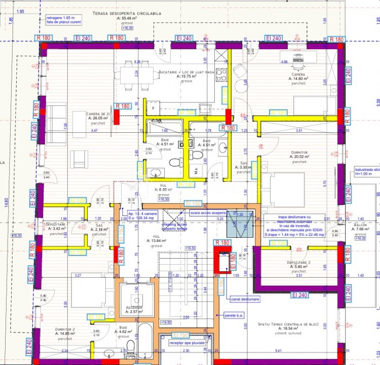 Penthouse, bloc nou, semifinisat, Iris Cluj-Napoca, Iris 4 camere • 126.34 m2 • 3 bai • etaj 5/5 • decomandat pret vanzare 379.020 € + TVA Caracteristici Tip locuinta Apartament Tip imobil bloc de apartamente Numar camere 4 Numar bucatarii 1 Numar bai 3 Numar balcoane 1 Numar terase 1 Numar garaje 1 Parcare da Supr. construita 160 m2 Suprafata utila 126.34 m2 Compartimentare Decomandat Confort 1 Etaj 5/5 Construit cu Caramida An constructie 2026 Disponibilitate imediat Descrierea Apartamentului Welt Imobiliare vă propune spre vânzare un penthouse de 4 camere, semifinisat, situat într-un imobil nou, cu finalizare la sfârșitul anului 2026, amplasat în cartierul Iris, în imediata apropiere a Parcului Feroviarilor și a viitorului proiect RIVUS. Proiectul este poziționat într-o zonă în plină dezvoltare a municipiului Cluj-Napoca, cu acces facil către zone verzi, puncte de interes și viitoare centre comerciale și de business. Apartamentul este amplasat la etaj retras, ocupând întregul nivel, oferind un grad ridicat de intimitate. Are o suprafață utilă de 126 mp și este compartimentat eficient în: living cu bucătărie, 3 dormitoare, 3 băi, dressing, terasă de 55 mp, balcon de 8 mp. Locuința se predă la stadiul de semifinisat, cu: șapă, un strat de glet, ferestre termoizolante, ușă de intrare, încălzire în pardoseală, precum și toate instalațiile electrice și sanitare trase la poziție. Imobilul are un regim de înălțime redus și cuprinde doar 13 apartamente, toate decomandate, oferind un cadru exclusivist de locuire. Preț: 3.000 euro/mp + TVA Garaj subteran: 15.000 euro + TVA (CF individual) Pentru detalii suplimentare sau programarea unei vizionări, echipa Welt Imobiliare vă stă la dispoziție. ID Proprietate - P52954 Utilitati, Finisaje Utilitati generale: Electricitate, Apa, Gaz, Canalizare Finisaje: Izolatii termice (Bloc izolat termic), Ferestre cu geam termopan (PVC), Usa intrare (Metal) Dotari: Dotari imobil (Interfon, Lift) Vecinatati si puncte de interes in zona Amenajare strazi (Asfaltate), Iluminat stradal, Mijloace de transport in comun Numar vizualizari: 38 Actualizat: 2026-02-02 22:12:28