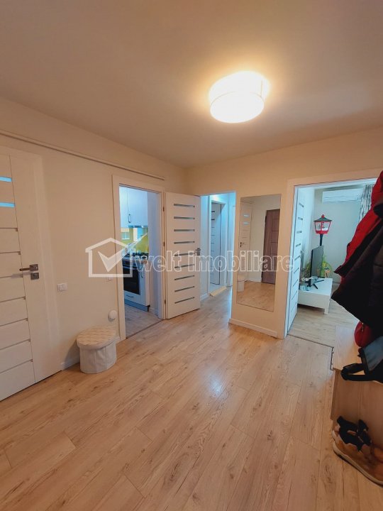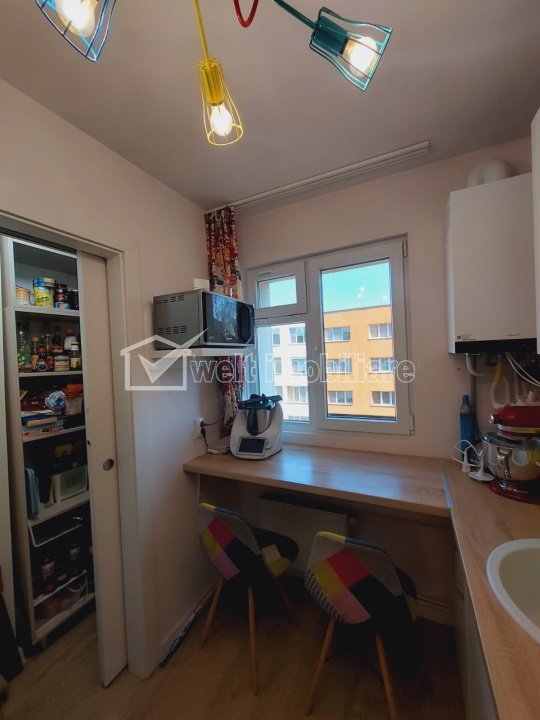 Caracteristici Tip locuinta Apartament Tip imobil bloc de apartamente Numar camere 4 Numar bucatarii 1 Numar bai 2 Numar balcoane 1 Parcare nu Supr. construita 99 m2 Suprafata utila 82 m2 Compartimentare Decomandat Confort 1 Etaj 3/4 Disponibilitate imediat Descrierea Apartamentului Va propunem spre vanzare un apartament luminos cu 4 camere, situat la etajul 3 al unui imobil dispus pe 4 niveluri, dotat cu interfon si termoizolat. Localizarea este in cartierul Manastur, zona Piata Flora iar printre punctele de interes din apropiere putem aminti: mijloace de transport in comun, magazine, Piata Flora, etc. Apartamentul dispune de o suprafata totala de 82 mp, iar compartimentarea este gandita astfel: - 4 camere - 1 bucatarie - 2 bai(una cu geam) - Hol - Camara - 1 balcon inchis. Confortul termic este asigurat de: centrala proprie, respectiv aer conditionat. Apartamentul este ideal atat ca locuinta proprie, dar si pentru investitie. Orientarea este E-S-V. La nivelul finisajelor regasim: parchet, gresie, vopsea lavabila, faianta, geamuri termopan, usi interior din lemn, usa de metal la intrare. Pentru mai multe informatii sau programarea unei vizionari, nu ezitati sa ne contactati! ID Proprietate - P53616 Utilitati, Finisaje Utilitati generale: Electricitate, Apa, Gaz, CanalizareSistem de incalzire Centrala termicaClimatizare Aer conditionat Finisaje: Izolatii termice (Bloc izolat termic), Pereti (Vopsea lavabila, Faianta), Podele (Parchet, Gresie), Stare interior (Renovat), Usa intrare (Metal), Usi interior (Lemn) Dotari: Alte spatii utile (WC Serviciu, Boxa la subsol), Bucatarie (Mobilata, Utilata), Contorizare (Apometre, Contor gaz), Dotari imobil (Interfon), Electrocasnice (Masina de spalat rufe, Frigider, Masina de spalat vase, TV, Hota) Vecinatati si puncte de interes in zona Gradinita Dumbrava Minunata Amenajare strazi (Asfaltate, Betonate), Iluminat stradal, Mijloace de transport in comun Numar vizualizari: 42 Actualizat: 2026-02-28 15:13:53