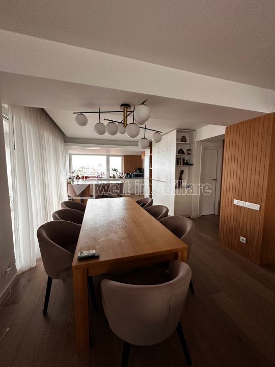 Caracteristici Tip locuinta Penthouse Tip imobil bloc de apartamente Numar camere 5 Numar bucatarii 1 Numar bai 3 Numar terase 2 Parcare da Supr. construita 450 m2 Suprafata utila 210 m2 Compartimentare Decomandat Confort Marit Etaj 6/6 Construit cu Caramida An constructie 2014 Disponibilitate imediat Descrierea Apartamentului Welt Imobiliare va prezinta un penthouse in bloc nou, finalizat in 2014, cu scara interioara. In primul nivel al acestui penthouse de lux, te intampina un spatiu generos, bine structurat, unde confortul se imbina cu stilul modern. Aici se afla 4 camere, inclusiv dormitoarele elegante, dotate cu dressinguri care ofera spatiu de depozitare generos Cele 3 bai, finisate cu marmura, aduc un aer de rafinament si functionalitate. Terasele spatioase creeaza locuri ideale pentru relaxare, permitandu-ti sa te bucuri de aerul proaspat si de lumina naturala in fiecare zi. La etaj, te asteapta un sanctuar de relaxare, unde sala de fitness te invita sa-ti mentii stilil de viata activ in confortul propriei locuinte. De asemenea, o alta terasa, cu o priveliste panoramica deosebita, transforma acest spatiu intr-un loc perfect pentru a te relaxa si a te bucura de frumusetile orasului, fie ca savurezi o cafea de dimineata sau te bucuri de apusurile spectaculoase. Suprafata utila: 210 mp Suprafata construita: 450 mp Camere: 5 camere, din care 3 dormitoare, fiecare cu dressing propriu Bai: 3 bai dintre care doua la primul nivel, iar cea de-a treia la etaj Bucatarie: spatioasa si complet utilata Spatii exterioare si priveliste: 2 terase de 240 mp, una dintre ele cu priveliste panoramica de 360 de grade Acest penthouse de exceptie, cu un design elegant si vedere unica, este creat pentru un stil de viata relaxant si bine meritat! Pentru detalii aditionale, sau cereri de vizionare, nu ezitati sa ne contactati. ID Proprietate - P49255 Utilitati, Finisaje Utilitati generale: Electricitate, Apa, Gaz, CanalizareSistem de incalzire Centrala de imobil, CalorifereClimatizare Aer conditionat Finisaje: Izolatii termice (Bloc izolat termic), Pereti (Vopsea lavabila, Faianta), Podele (Parchet, Marmura), Ferestre cu geam termopan (PVC), Usa intrare (Metal) Dotari: Alte spatii utile (Terasa, WC Serviciu, Debara), Bucatarie (Mobilata, Utilata), Contorizare (Apometre, Contor caldura), Dotari imobil (Interfon, Lift), Electrocasnice (Masina de spalat rufe, Frigider), Diverse (Semineu) Vecinatati si puncte de interes in zona Amenajare strazi (Asfaltate), Iluminat stradal, Mijloace de transport in comun Numar vizualizari: 886 Actualizat: 2025-10-20 12:41:51