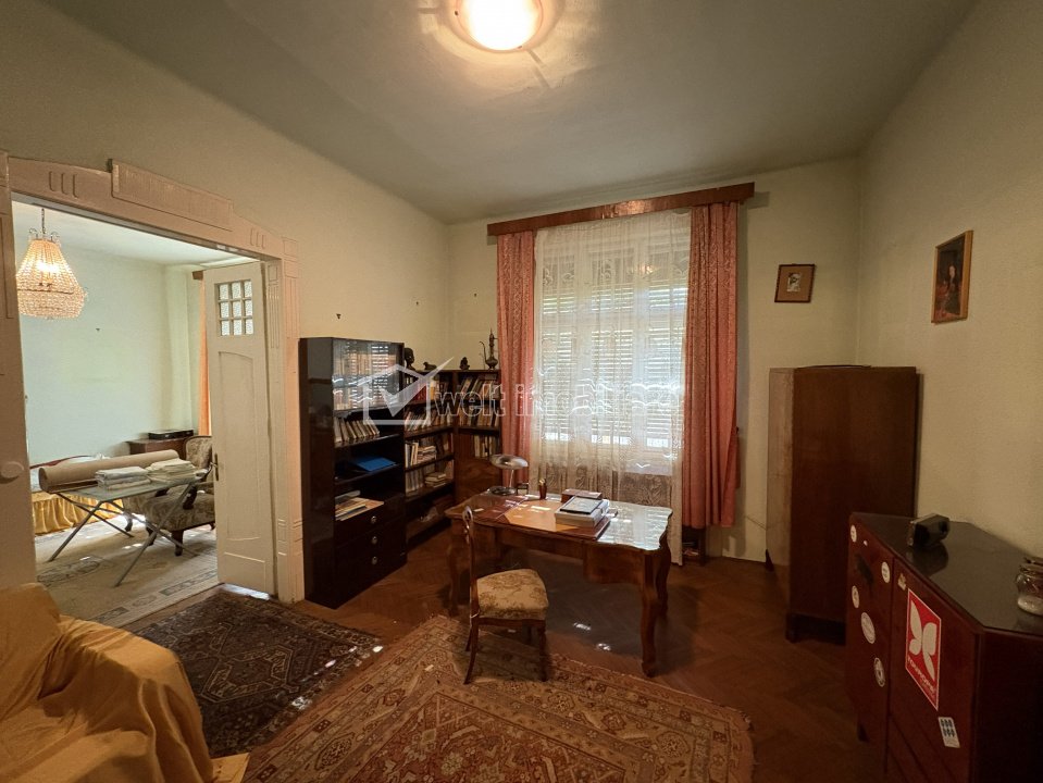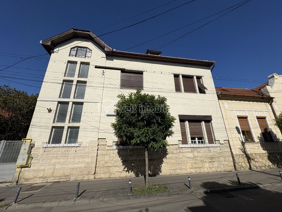 Apartament extrem de spatios, in vila interbelica, curte si gradina proprie !! Cluj-Napoca, Centru 5 camere • 160 m2 • 2 bai • etaj parter/1 • semidecomandatnecesita renovare pret vanzare negociabil 545.000 € + 31 + 28 Exclusivitate Caracteristici Tip locuinta Apartament Tip imobil casa/vila Numar camere 5 Numar bucatarii 1 Numar bai 2 Numar terase 1 Parcare da Supr. construita 284 m2 Suprafata utila 160 m2 Compartimentare Semidecomandat Confort Marit Etaj parter/1 Construit cu Caramida An constructie 1931 Disponibilitate imediat Descrierea Apartamentului EXCLUSIVITATE ! Welt Imobiliare vinde o superba proprietate unicat, situata in zona semicentrala, intr-o vila interbelica in zona Liceului Avram Iancu. Apartamentul compus din 5 camere, bucatarie, 2 bai, hol antreu si alte dependinte este situat la parterul vilei, cu acces direct la curtea comuna in suprafata de 553 mp precum si la GRADINA PROPRIE in suprafata de 272 mp. Suprafata totatala construita a apartamentul este de 284 mp iar suprafata utila este de 160 mp. Este o vila cu un design deosebit, compartimentarile fiind realizate cu multa eleganta si dand un aer nobil proprietatii: de la tavanele inalte de 3,80, la candelabrele imense de cristal, usile interioare de lemn cu modele deosebite, terasa inchisa care poate fi utilizata si iarna, baia extrem de spatioasa, compartimentata in sala WC si sala de baie, avand dulapuri generoase pentru halate, prosoape etc. Bucataria este pozitionata intr-o aripa mai indepartata de zona camerelor, pentru a evita prezenta fostelor servitoare si bucatarese in zona destinata strict proprietarilor. La subsol dispune de o pivnita de 22 mp si alte spatii comune de depozitare. Curtea este pavate si permite parcarea a cel putin 2 autoturisme proprii Pentru alte detalii sau vizitarea acestei superbe proprietati, nu ezitati sa ne contactati. ID Proprietate - P54126 Utilitati, Finisaje Utilitati generale: Electricitate, Apa, Gaz, CanalizareSistem de incalzire Sobe de teracota Finisaje: Pereti (Faianta), Podele (Parchet, Gresie), Stare interior (Semifinisat), Ferestre cu geam termopan (Lemn), Rulouri/Obloane (Lemn), Usa intrare (Lemn), Usi interior (Lemn, Sticla) Vecinatati si puncte de interes in zona Liceul Avram Iancu, Piata Avram Iancu, Cladirea The Office, Piata Mihai Viteazul Numar vizualizari: 55 Actualizat: 2026-03-21 18:36:34