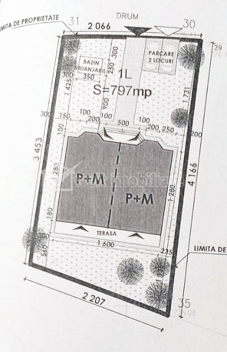 Caracteristici Tip locuinta Casa Numar camere 14 Numar bucatarii 4 Numar bai 4 Numar balcoane 2 Numar terase 2 Suprafata terase 25.00 mp Parcare da Beci nu Gradina nu Suprafata utila 384 m2 Suprafata construita 470 m2 Suprafata teren 797 m2 Front 16 m Etaj 1 Struct. rezistenta Caramida An constructie 2016 Disponibilitate imediat Descrierea Casei Welt Imobiliare propune spre vanzare o proprietate tip duplex (constructie in oglinda), amplasata in comuna Feleacu, intr-o zona rezidentiala linistita, cu acces facil catre municipiul Cluj-Napoca. Imobilul este edificat pe un teren in suprafata de aproximativ 797 mp si reprezinta o solutie optima pentru dezvoltatori de unitati educationale private sau centre de ingrijire. Date tehnice imobil: - an finalizare: 2016; - regim de inaltime: Parter + Etaj + pod mansardabil; - structura: zidarie din caramida; - suprafata construita desfasurata: 470 mp; - suprafata utila: 192 mp / unitate; - amprenta la sol: 212 mp; - acoperis: tigla din beton; - tamplarie: PVC cu geam termopan; - pod mansardabil: inaltime aprox. 4 m la cornisa (potential de extindere). Instalatii si utilitati: - sistem de incalzire mixt: gaz / lemne / electric, calorifere; - centrale termice si boiler amplasate in camera tehnica comuna; - racorduri la utilitati: apa, gaz, energie electrica; - acces auto securizat prin poarta metalica culisanta automatizata. Compartimentare (pe fiecare unitate): Parter: - living; -bucatarie; - dormitor; - baie; - spatiu depozitare. Etaj: - living; - 3 dormitoare; - dressing; - baie; - balcon. Mansarda: - inaltime 4 m pana la cornisa, nefinalizata. Configuratie totala (ambele unitati): - 10 dormitoare; - 4 livinguri; - 4 bucatarii; - 4 bai; - 2 dressinguri; - 2 spatii depozitare; - 2 balcoane; - 2 terase; - camera tehnica comuna. Una dintre unitati beneficiaza de acces exterior separat catre etaj, facilitand delimitarea functionala a spatiilor (ex: separare fluxuri beneficiari/personal). Amenajari exterioare: - curte amenajata cu gazon si arbori ornamentali; - terase acoperite; - parcari acoperite pentru minimum 4 autoturisme; - spatiu liber generos, pretabil amenajari suplimentare (loc de joaca, zona recreativa, extinderi). Proprietatea se preteaza pentru: - familii tinere impreuna cu parintii; - cresa / gradinita privata; - unitate de invatamant tip after-school; - camin pentru varstnici / centru de ingrijire; - centru educational multifunctional sau unitate de cazare. Localizare si acces: Imobilul este situat intr-o zona aerisita, cu densitate redusa, benefica pentru activitati educationale sau de ingrijire, avand in proximitate statie de transport in comun, padure, acces facil catre centura Apahida-Valcele, partia de schi Feleacu si alte facilitati locale. Se vinde in integralitate (nu se accepta vanzarea separata a unitatilor), fiind o oportunitate pentru investitori care urmaresc dezvoltarea unui proiect functional intr-un cadru natural, aproape de oras. Pentru informatii suplimentare, documentatie tehnica sau stabilirea unei vizionari, va rugam sa ne contactati. ID Proprietate - P51602 Finisaje Izolatii termice (Exterior), Pereti (Vopsea lavabila, Faianta), Podele (Parchet, Gresie), Usa intrare (Metal, Lemn), Usi interior (Lemn) Vecinatati si puncte de interes in zona Amenajare strazi (Asfaltate) Numar vizualizari: 1156 Actualizat: 2026-04-01 00:01:17