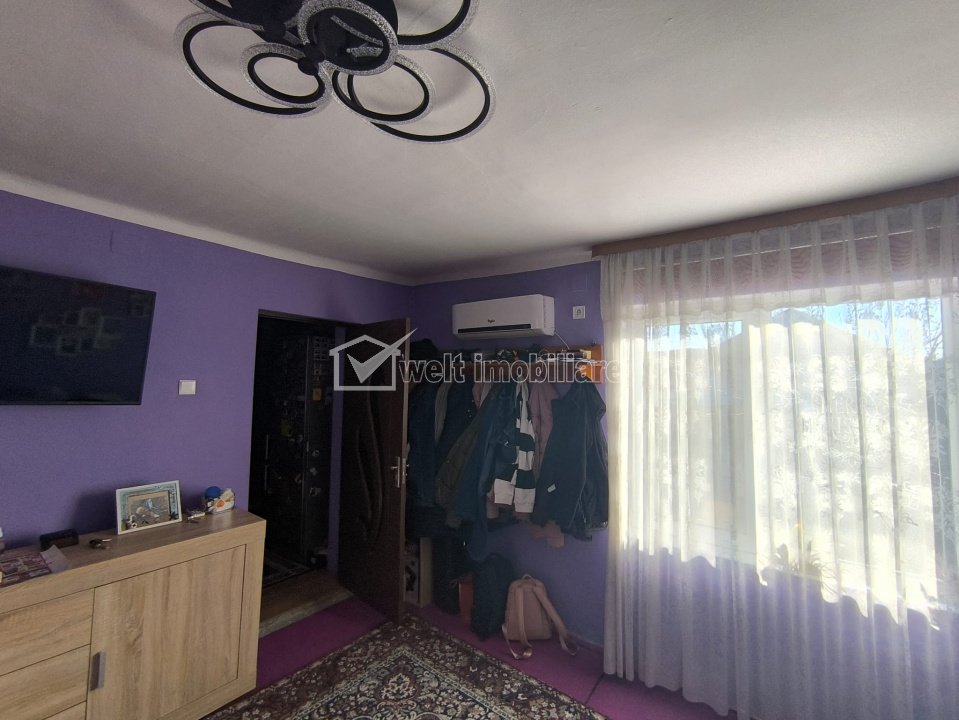 + 16 + 13 Caracteristici Tip locuinta Casa Numar camere 2 Numar bucatarii 2 Numar bai 2 Numar terase 1 Parcare da Beci nu Gradina da Suprafata utila 68 m2 Suprafata construita 79 m2 Suprafata teren 750 m2 Front 56 m Struct. rezistenta Caramida An constructie 1978 Disponibilitate imediat Descrierea Casei Welt Imobiliare intermediaza vanzarea unei case renovabile, cu un teren aferent de 750 m.p., in satul Apahida, comuna Apahida, jud. Cluj. Proprietatea se afla intr-o zona buna, avand 2 fronturi, la 2 strazi, de 56 si 15 metri, fiind pretabila atat pentru locuinta cat si pentru alte investitii, avand in vedere dispunerea si geometria terenului. Casa este renovabila, fiind construita pe 2 niveluri, D+P+Pod, compartimentarea fiind, dupa cum urmeaza: -La demisol: 1 bucatarie, 1 baie si 1 camara; -La parter: 1 hol acces, 2 camere, 1 bucatarie, 1 baie; Ca si utilitati, casa este conectata la reteaua publica de apa si curent, avand fosa septica pentru canalizare. Reteaua de gaz si reteaua publica de canalizare, trec prin fata portii, existand posibilitatea racordarii la acestea, daca noii proprietari vor dori. In curte se pot parca in prezent, 2 autoturisme, iar in functie de preferinte, se pot face modificari, pentru a creste aceasta posibilitate. Actele proprietatii sunt in regula, fiind ocupabila imediat. Pentru o vizionare, nu ezitati sa ne contactati! Echipa Welt Imobiliare. ID Proprietate: P 53788 ID Proprietate - P53788 Finisaje Pereti (Vopsea lavabila, Faianta), Podele (Gresie, Dusumea), Stare interior (Necesita renovare), Ferestre cu geam termopan (PVC), Usa intrare (PVC), Usi interior (Lemn) Vecinatati si puncte de interes in zona Amenajare strazi (Asfaltate), Iluminat stradal, Mijloace de transport in comun Numar vizualizari: 53 Actualizat: 2026-03-13 08:48:14