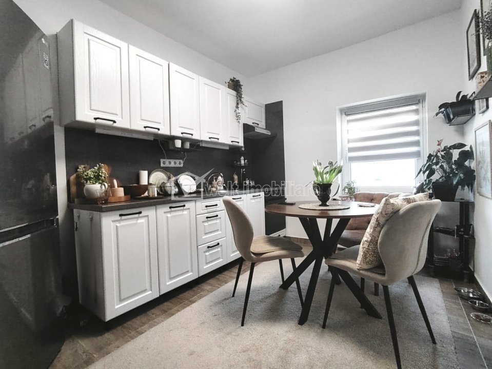 Casa individuala complet renovata in 2024, mobilata si utilata, teren 330 mp Chinteni 3 camere • 85 m2 • 330 m2 terenmobilat lux pret vanzare negociabil 199.000 € 2.341,18 €/m2 + 26 + 23 Caracteristici Tip locuinta Casa Numar camere 3 Numar bucatarii 2 Numar bai 2 Numar terase 1 Suprafata terase 8.00 mp Parcare da Beci nu Gradina da Suprafata utila 85 m2 Suprafata teren 330 m2 Front 16 m An constructie 1969 Disponibilitate imediat Descrierea Casei Casa individuala complet renovata in 2024, mobilata si utilata, teren 330 mp, Chinteni – te muti maine fara griji Welt Imobiliare Cluj-Napoca intermediaza vanzarea unei case individuale situata in comuna Chinteni, intr-o zona linistita, potrivita pentru cei care isi doresc un camin propriu, departe de agitatia orasului, dar cu acces facil la facilitati si transport. Proprietatea este construita in anul 1969 din piatra, cu pereti impresionanti de aproximativ 60 cm grosime, ceea ce ii confera o rezistenta deosebita si un confort termic excelent in orice anotimp. In anul 2024 casa a fost complet renovata interior si exterior, astfel incat noul proprietar se poate muta imediat, fara a mai investi timp sau bani in lucrari. Exteriorul casei a fost izolat cu polistiren de 15 cm si finisat cu tencuiala decorativa, iar acoperisul este nou, realizat din tabla ondulata. Interiorul a fost renovat integral: parchet, gresie, faianta, mobilier, bucatarie si baie – toate sunt noi, moderne si atent alese pentru a crea un spatiu placut si functional. Casa se vinde complet mobilata si utilata, exact asa cum se prezinta in fotografii. Imobilul este dispus pe doua niveluri si este organizat astfel: Demisol: - terasa - bucatarie - baie - spatii de depozitare Parter - hol - living - dormitor - bucatarie - baie - dressing Fiecare incapere este amenajata cu bun gust, astfel incat casa devine un spatiu primitor, potrivit atat pentru o persoana singura care isi doreste propriul camin, cat si pentru un cuplu sau pentru cei care vor sa se retraga din agitatia orasului si sa se bucure de linistea vietii rurale. Terenul aferent proprietatii are suprafata de 330 mp si este amenajat cu: - doua locuri de parcare pavate; - spatiu verde cu pomi fructiferi; - o mica gradina, perfecta pentru cei care doresc sa cultive legume sau sa amenajeze un colt de relaxare. Proprietatea este imprejmuita cu gard metalic, iar poarta auto este actionata electric, cu telecomanda. Un alt avantaj important este pozitionarea: la mai putin de 200 metri se afla magazine si statie de autobuz, ceea ce ofera acces rapid la facilitati si legatura usoara cu orasul. Aceasta proprietate este ideala pentru: - persoane singure care isi doresc un camin propriu; - cupluri care cauta liniste si confort; - persoane apropiate de varsta pensionarii care vor o viata mai relaxata; - oricine doreste o casa pregatita pentru mutare imediata, fara renovari si fara batai de cap. Daca iti doresti o casa autentica, solida, complet renovata si gata sa devina noul tau camin, aceasta proprietate merita vazuta. Pentru detalii suplimentare sau programarea unei vizionari, echipa Welt Imobiliare Cluj-Napoca va sta cu placere la dispozitie ID Proprietate - P53768 Finisaje Izolatii termice (Exterior, Interior), Pereti (Vopsea lavabila, Faianta), Podele (Parchet, Gresie), Usa intrare (Metal), Usi interior (Celulare) Vecinatati si puncte de interes in zona Amenajare strazi (Asfaltate), Mijloace de transport in comun Numar vizualizari: 17 Actualizat: 2026-03-17 18:37:33