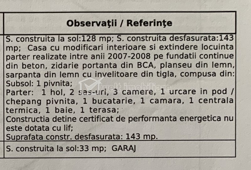 Casa in Andrei Muresanu, teren 487mp pe colt, 128mp utili, la 100m de Engels Cluj-Napoca, Andrei Muresanu 3 camere • 128 m2 • 487 m2 terennemobilat pret vanzare 365.000 € + 2 Vandut Caracteristici Tip locuinta Casa Numar camere 3 Numar bucatarii 1 Numar bai 1 Numar garaje 1 Parcare da Beci da Gradina da Suprafata utila 128 m2 Suprafata construita 143 m2 Suprafata teren 487 m2 Front 26 m Struct. rezistenta Beton Disponibilitate imediat Descrierea Casei Va propun spre vanzare o casa veche amplasata in inima cartierului Andrei Muresanu, la 150 de m de Piata Engels si Restaurantul Hora. Aceasta se remarca prin pozitia superba si terenul acesteia cu front la 2 strazi. Casa este lipita la calcan in partea din spate, ramamand astfel o zona de gradina generoasa in partea din fata. Suprafata utila este de 128 mp. Aceasta a beneficiat de renovari de structura in anul 2007, insa necesita renovari la partea de finisaje interioare. Beneficeaza si de un garaj lipit de casa. Terenul cu suprafata de 487 mp, se poate exploata excelent daca se demoleaza actuala casa existenta. Incadrarea urbanistica este ZCP-LIU, care prevede constructia unui imobil cu D+P+E+Er (M), cu POT 35% si CUT 0,9. Casa nu figureaza pe lista de monumente sau imobile protejate. Recomand cu incredere aceasta proprietate. Este cel mai mai interesant imobil aflat pe piata in momentul de fata din cartierul Andrei Muresanu! ID Proprietate - P26832 Finisaje Pereti (Huma), Podele (Parchet, Gresie), Stare interior (Necesita renovare), Ferestre cu geam termopan (PVC), Usa intrare (PVC), Usi interior (Lemn) Vecinatati si puncte de interes in zona Piata Engels Amenajare strazi (Asfaltate), Iluminat stradal, Mijloace de transport in comun Numar vizualizari: 2378 Actualizat: 2023-08-28 16:34:41
