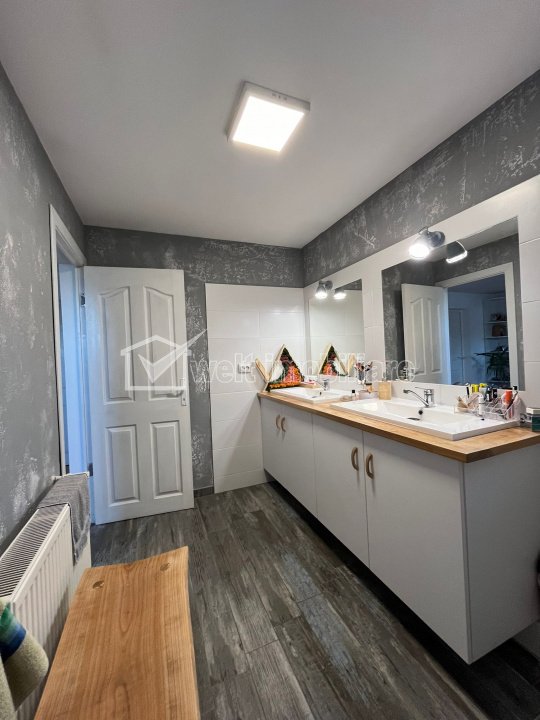 + 15 + 12 Caracteristici Tip locuinta Casa Numar camere 4 Parcare da Beci nu Gradina da Suprafata utila 188 m2 Suprafata teren 256 m2 Disponibilitate imediat Descrierea Casei Welt Imobiliare va propune pentru de vanzare o casa cu 4 camere, situata optim in Baciu. Casa este pe 2 nivele, P + M, are o suprafata utila de 188 mp si este compartimentata ideală pentru confortul întregii familii: Parter: bucătărie, living, hol, baie, cameră de depozitare sub scări, spațiu tehnic, și un atelier de aproximativ 40 mp. Mansardă: 3 dormitoare (dintre care unul matrimonial cu dressing), 2 băi, wc-ul e separat de baie, și etajul mai dispune de încă un dressing, cameră separată. Proprietatea dispune și de o grădină amenajată în fața casei cu flori. În spate, veți găsi o terasă perfectă pentru relaxare, un foișor cu cuptor pentru pizza, grătar și o grădină de legume. Proprietatea dispune de 3 locuri de parcare amenajate. Încălzirea se realizează printr-o centrală pe lemne, asigurând astfel un confort termic optim. Această casă este o oază de liniște și relaxare, ideală pentru cei care doresc să se bucure de un stil de viață tradițional într-o zonă liniștită. Casă se poate împărți în 2 apartamente cu intrări separate. Terenul aferent casei are o suprafata de 267 , oferind liniste si o priveliste minunata viitorilor locatari. Această proprietate este perfectă pentru cei care caută liniște și relaxare. Pentru alte detalii sau o oferta personalizata, va stam la dispozitie. P46214 ID Proprietate - P46214 Finisaje Pereti (Vopsea lavabila), Podele (Parchet, Gresie), Usi interior (Lemn)