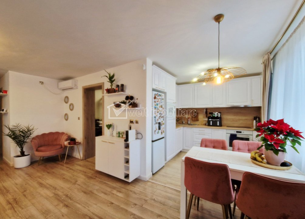 + 14 + 11 Comision 0% Caracteristici Tip locuinta Casa Numar camere 4 Parcare nu Beci nu Gradina nu Suprafata utila 84 m2 Suprafata teren 300 m2 Front 15 m An constructie 2020 Disponibilitate imediat Descrierea Casei Va propunem spre vanzare o casa individuala moderna, situata in zona centrala a localitatii Campenesti, intr-o zona de deal, cu aer curat si peisaj placut, aproape de lacuri de pescuit si zone verzi. Proprietatea ofera combinatia ideala intre confortul vietii la casa si accesul rapid catre oras. Locatia este excelenta: la aproximativ 10 minute de mers pe jos pana la statia de autobuz, magazine si gradinita, 15 minute pana la Aeroport si aproximativ 35 de minute pana in centrul Clujului. Casa este edificata in anul 2018, este moderna, complet mobilata si utilata premium, gata de mutare imediata, fara a necesita investitii suplimentare. Suprafete: - suprafata utila totala: 84 mp (parter + demisol de 24 mp); – mansarda: aproximativ 60 mp utili, izolata termic si pregatita pentru amenajare (2 camere + baie); – balcon: 7,5 mp, inchis cu termopan; – teren: 300 mp proprietate. Compartimentare parter: – living spatios; – bucatarie complet utilata; – baie cu geam; – 2 dormitoare (dormitor matrimonial cu balcon); – garderoba. Exterior si curte: – foisor amenajat pentru relaxare; – curte pavata si mobilier de gradina inclus; – loc de parcare privat; – gard si poarta metalice. Dotari si echipamente: – ferestre tripan (6 mm); – centrala pe peleti, economica si eficienta; – gaz tras pana la casa, proiect finalizat, conducta activa; – fantana proprie cu apa de izvor; – 2 aparate de aer conditionat; – mobilier premium realizat la comanda. Electrocasnice incluse: - plita si cuptor electric; - cuptor cu microunde; - masina de spalat rufe cu uscator; - masina de spalat vase; - rigider; - televizoare; - mobilier de gradina. Avantaje majore: – totul este nou si foarte bine intretinut; – mansarda generoasa, gata pentru personalizare; – zona de deal, aer curat si liniste; – ideala pentru familie sau pentru cei care doresc sa locuiasca aproape de natura, dar cu acces rapid spre oras; – acces la zone de recreere si lacuri de pescuit. In perioada urmatoare urmeaza asfaltarea arterelor principale din zona, proces aflat momentan in etapa de solutionare a contestatiilor firmelor participante la licitatie. Aceasta proprietate este alegerea perfecta pentru cei care isi doresc confortul unei case, curte proprie si liniste, intr-o zona in plina dezvoltare, aproape de Cluj-Napoca. ID Proprietate - P53360
