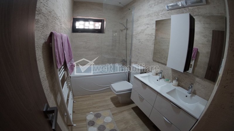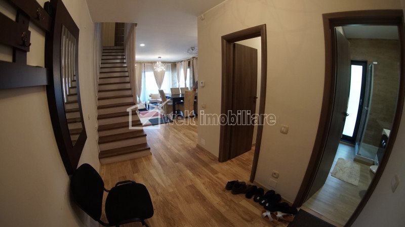 Casa in cartierul Europa cu teren 250 mp Cluj-Napoca, Europa 4 camere • 170 m2 • 320 m2 terenmobilat complet pret vanzare 475.000 € + 16 + 13 Vandut Caracteristici Tip locuinta Casa Tip imobil Duplex Numar camere 4 Numar bucatarii 1 Numar bai 3 Numar balcoane 2 Numar terase 2 Suprafata terase 50.00 mp Parcare da Beci nu Gradina da Suprafata utila 170 m2 Suprafata construita 254 m2 Suprafata teren 320 m2 Front 8 m Etaj 2 Struct. rezistenta Caramida An constructie 2019 Disponibilitate imediat Descrierea Casei Welt Imobiliare va ofera spre vanzare un duplex cu arhitectura deosebita, in cartierul Europa, pe strada Eugen Ionesco. Este amplasat intr-o zona linistita de case, cu spatiu verde, curtea interioara fiind amenajata cu gazon sustinut de un sistem de irigatie. Imobilul are o suprafata utila de 170 mp si este dispus pe doua niveluri, dupa cum urmeaza: Parter: - 1 living cu bucatarie open space complet echipata (aragaz, cuptor electric, masina spalat vase, etc.) si iesire in gradina; - 1 baie; - 1 antreu. Etaj: - 3 dormitoare; - 2 bai; - 2 balcoane; Etaj retras: - un spatiu de depozitare si iesirea pe terasa spatioasa cu vedere panoramica. Confortul termic este asigurat de centrala termica proprie si aer conditionat. Toate incaparerile sunt complet mobilate cu mobilier modern iar in fiecare dormitor se afla cate un TV. Incalzirea in pardoseala, sistemul de aer conditionat, finisajele moderne, precum si micile detalii decorative sunt doar cateva din elementele care va asigura tot confortul. Casa dispune de CF si se vinde direct de pe persoana fizica, la pret nu se adauga TVA. Imobilul este monitoriat video iar pe strada, in fata imobilului, pot fi parcate 2-3 masini. Pentru mai multe detalii, oferte de pret si pentru a programa o vizionare, contactati-ne cu incredere! Va stam cu drag la dispozitie. ID Proprietate - P39602 Finisaje Izolatii termice (Exterior), Pereti (Vopsea lavabila, Faianta), Podele (Parchet, Gresie), Ferestre cu geam termopan (PVC), Usa intrare (Metal), Usi interior (Lemn) Vecinatati si puncte de interes in zona Spitalul de Recuperare, Facultatea de Arhitectura Amenajare strazi (Asfaltate, Betonate), Iluminat stradal Numar vizualizari: 1925 Actualizat: 2024-05-30 11:32:19