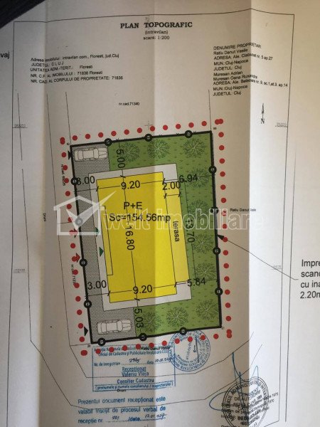 Exclusivitate! Vanzare duplex 119 mp utili, zona exclusiv de case Cluj-Napoca 4 camere • 119 m2 • 250 m2 terennemobilat pret vanzare 97.000 € comision 0% la cumparare • + 2 Vandut Exclusivitate Caracteristici Tip locuinta Casa Tip imobil Duplex Numar camere 4 Numar bucatarii 1 Numar bai 2 Parcare da Beci nu Gradina nu Suprafata utila 119 m2 Suprafata construita 150 m2 Suprafata teren 250 m2 Front 13 m Etaj 1 Struct. rezistenta Caramida An constructie 2017 Disponibilitate 01.07.2017 Descrierea Casei Va oferim in exclusiviate o casa de tip duplex, situata intr-o zona deosebit de frumosa si foarte cautata din FLoresti, zona Tauti. Casa are un regim de inaltime P+1E si o suprafata utila de 119 mp; se bucura si de un teren aferent de 250 mp. Este compusa la parter din living cu bucatarie, baie, hol si o teresa, iar la etaj sunt 3 dormitoare si 2 bai. Stadiul la care se vinde duplexul este semifinisat, incluzand centrala termica si calorifere. Pentru mai multe detalii si vizionari va stam la dispozitie. ID P4395 ID Proprietate - P4395 Finisaje Izolatii termice (Exterior), Stare interior (Necesita renovare), Ferestre cu geam termopan (PVC), Usa intrare (Metal) Vecinatati si puncte de interes in zona Amenajare strazi (Asfaltate) Numar vizualizari: 610 Actualizat: 2023-08-18 18:31:22