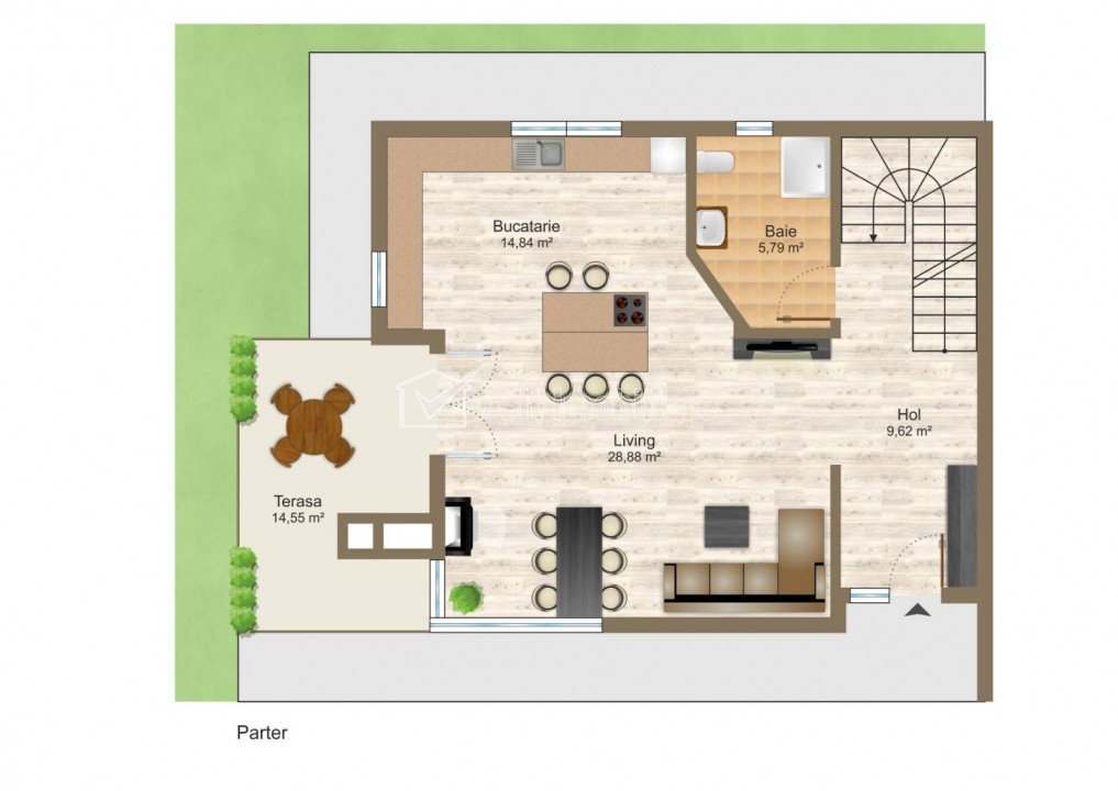 Caracteristici Tip locuinta Casa Tip imobil Duplex Numar camere 4 Numar bucatarii 1 Numar bai 3 Parcare da Beci nu Gradina nu Suprafata utila 120 m2 Suprafata construita 145 m2 Suprafata teren 230 m2 Struct. rezistenta Caramida Descrierea Casei Va propunem spre vanare un duplex in cartierul Iris. Dispune de o suprafata utila de 120 m2 compartimentati astfel: parter - 1 living open space cu bucataria; - 1 baie; - 1 hol; etajul 1 - 3 dormitoare; - 2 bai; - 2 balcoane. Se preda la stadiul de semifinisat, cu sapa autonivelanta, pereti cu glet si centrala termica cu incalzire in pardoseala. Pentru mai multe informatii va stam cu drag la dispozitie. ID Proprietate - P32348 Finisaje Izolatii termice (Exterior), Usi interior (PVC)