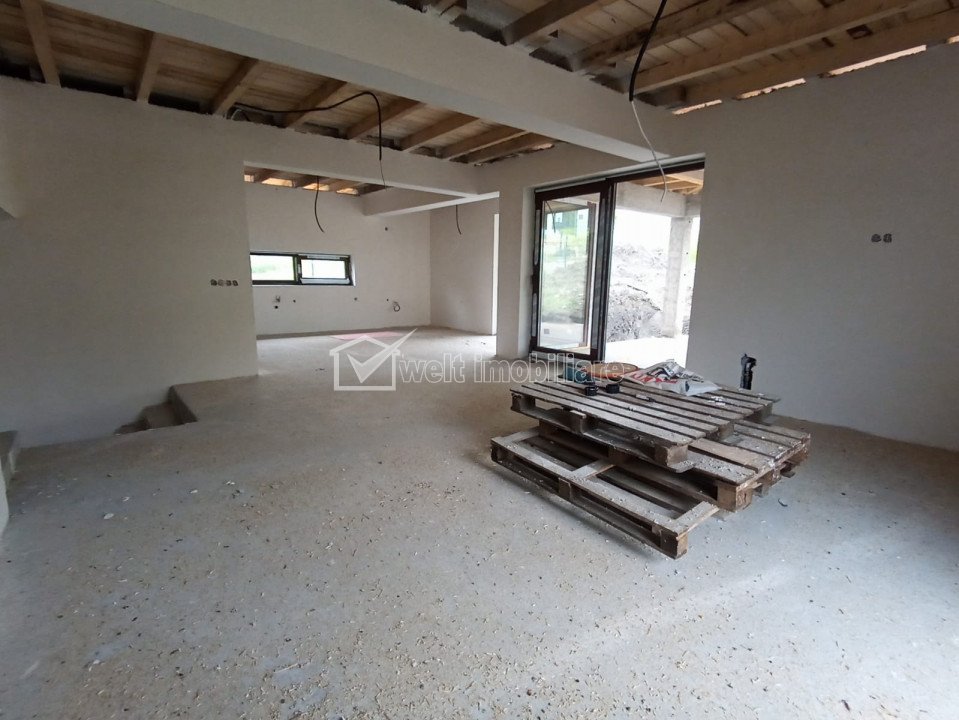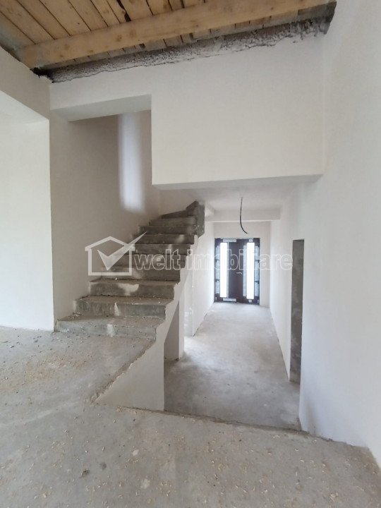 Caracteristici Tip locuinta Casa Numar camere 4 Numar bucatarii 1 Numar bai 4 Numar garaje 1 Parcare da Beci nu Gradina da Suprafata utila 162 m2 Suprafata construita 220 m2 Suprafata teren 718 m2 Front 33 m Etaj 1 Struct. rezistenta Caramida An constructie 2021 Disponibilitate vara 2022 Descrierea Casei Alege calitate, alege sa stii in ce investesti, alege sa vezi si sa respiri! Welt Imobiliare va aduce in atentie posibilitatea achizitionarii unui imobil semifinisat, in cartier privat Terra Gardens, zona rezidentiala. Situata intr-o zona cu acces foarte bun, proprietatea poate fi locuinta mult dorita in proximitatea Clujului, la 4,5 km de Auchan Iris, 7 km de Gara Cluj-Napoca si 8,5 km de Piata Mihai Viteazu. Compartimentata pentru a asigura buna locuire a unei familii casa ofera: - la parter - living cu loc de servit masa, bucatarie, baie, dormitor cu baie proprie, hol casa scarii, iar la exterior terasa, curte si garaj; - la etaj - hol casa scarii, 2 dormitoare fiecare beneficiind de baie proprie. Curtea de 590 mp, din cei 718 mp ai proprietatii, este suficienta pentru a asigura nevoia de confort si intimitate. ID P37865 ID Proprietate - P37865 Finisaje Izolatii termice (Exterior), Ferestre cu geam termopan (PVC), Usa intrare (PVC) Vecinatati si puncte de interes in zona Terra Gardens, Iris Auchan Amenajare strazi (Asfaltate), Iluminat stradal, Mijloace de transport in comun Numar vizualizari: 1552 Actualizat: 2023-08-24 12:32:56