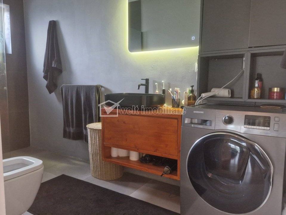 Panorama, intimitate și stil-proprietate rara in Tineretului Cluj-Napoca, Iris 4 camere • 203 m2 • 341 m2 terenmobilat lux pret vanzare negociabil 455.000 € 415.000 € + 15 + 12 Vandut Caracteristici Tip locuinta Casa Tip imobil Duplex Numar camere 4 Numar bucatarii 1 Numar bai 2 Numar balcoane 2 Numar garaje 1 Parcare da Beci da Gradina nu Suprafata utila 203 m2 Suprafata teren 341 m2 Etaj 1 Struct. rezistenta Caramida An constructie 2020 Disponibilitate imediat Descrierea Casei Welt Imobiliare va propune spre cumpărare o proprietate moderna, construita in 2020, pozitionata pe una dintre cele mai frumoase strazi private, asfaltate si iluminate din Cartierul Tineretului. Zona linistita, fara trafic, cu statie de autobuz la cativa pasi, vecini tineri si de calitate. Suprafata utila 203 mp: Parter & etaj – 120 mp: living generos cu panorama spre oras, bucatarie complet utilata, 3 dormitoare, baie cu dus walk-in Subsol – 83 mp: 2 garaje, spatii tehnice, camera multifunctionala (sala sport/cinema) Teren 341 mp + terasa mobilata, curte verde cu gard viu, gradina laterala, a doua terasa pregatita pentru amenajare. Orientare sud-vestica, privelisti superbe din toate nivelurile. Finisaje premium, incalzire in pardoseala, aer conditionat, mobilier modern, sistem de alarma. Locuri de parcare suplimentare pentru invitati. Pret: 415.000 EUR ID Proprietate - P47199 Finisaje Izolatii termice (Exterior), Pereti (Vopsea lavabila, Faianta), Podele (Parchet, Gresie), Ferestre cu geam termopan (PVC), Usa intrare (PVC), Usi interior (Celulare) Vecinatati si puncte de interes in zona Amenajare strazi (Asfaltate) Numar vizualizari: 478 Actualizat: 2025-09-08 18:50:32