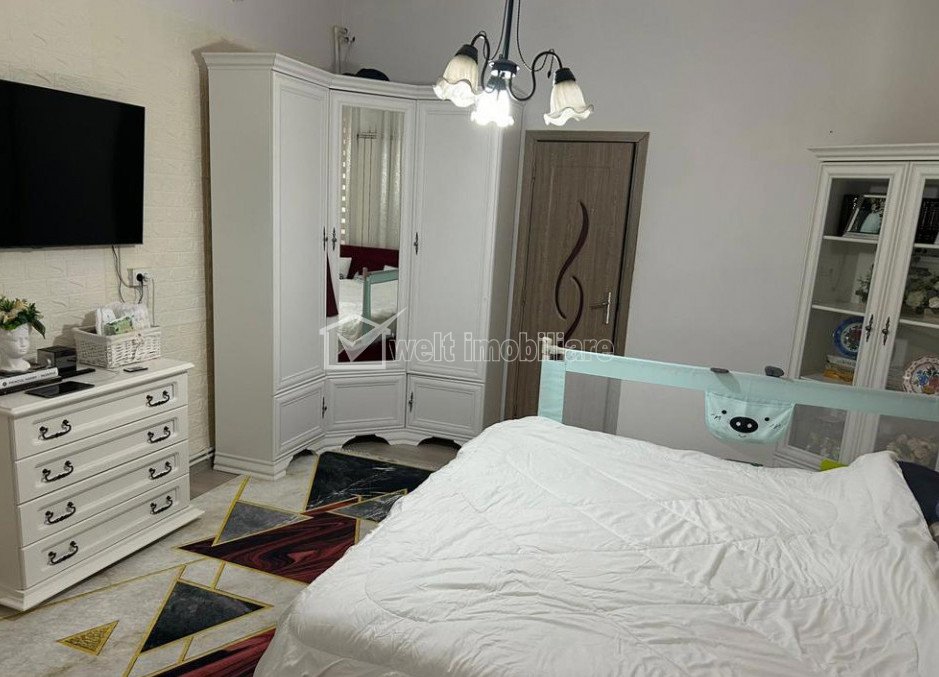 Caracteristici Tip locuinta Casa Numar camere 4 Numar bucatarii 1 Numar bai 2 Parcare da Beci nu Gradina da Suprafata utila 158 m2 Suprafata construita 189 m2 Suprafata teren 400 m2 Front 12 m Struct. rezistenta Caramida Disponibilitate imediat Descrierea Casei Va oferim spre achizitie o proprietate situata in Marasti, zona Farmec Aceasta este compartimentata in 2 apartamente si se vinde ca intreg. Are o suprafata utila de 158 mp totali, si un teren de 400 mp. Este dispusa pe un singur nivel si este compartimentata in felul urmator: * Primul apartement are: o camera, bucatarie, baie; * Cel de-al doilea apartament are: 3 camere, o bucatarie, o baie, o camara, un beci ( 18 mp). La acestea se mai adauga un pod cu posibilitate de mansardare. Casa este renovata, are 2 centrale termice, aer conditionat. Frontul la strada este de cca. 12 mp. CF liber de sarcini. Aceasta a fost recent renovata, si se vinde partial mobilata ( un apartament), cu bucataria mobilata si utilata, si total mobilata ( cel de-al doilea apartament). Este pozitionata intr-o zona de interes a cartierului Marasti, astfel se poate ajunge cu usurinta catre toate punctele de interes ale orasului, precum si in afara acestuia. Asteptam cu interes sa ne contactati in vederea stabilirii unei vizionari a acestei proprietati! Merita vazuta. ID Proprietate - P39646 Finisaje Izolatii termice (Exterior), Pereti (Vopsea lavabila, Faianta), Podele (Parchet, Gresie), Usa intrare (PVC), Usi interior (Lemn) Vecinatati si puncte de interes in zona Kaufland Marasti, Scoala Gimnaziala Ion Agarbiceanu Amenajare strazi (Asfaltate, Betonate), Iluminat stradal, Mijloace de transport in comun Numar vizualizari: 1056 Actualizat: 2023-10-26 11:26:09