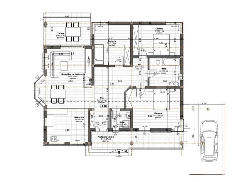 Casa individuala-eficienta energetica A+ | Teren 500 mp| Corusu Corusu 4 camere • 120 m2 • 500 m2 terenmobilat complet pret vanzare 255.500 € + 11 + 8 Caracteristici Tip locuinta Casa Numar camere 4 Numar bucatarii 1 Numar bai 2 Numar terase 1 Suprafata terase 6.00 mp Parcare da Beci nu Gradina da Suprafata utila 120 m2 Suprafata construita 145 m2 Suprafata teren 500 m2 Front 25 m Struct. rezistenta Caramida An constructie 2021 Disponibilitate imediat Descrierea Casei Iti doresti sa ai parte de linistea unui loc pe care sa il numesti camin? Welt Imobiliare va ofera spre vanzare o proprietate situata in Corusu, comuna Baciu. Cu o suprafata utila de 120 mp si un teren de 500 mp patrati, aceasta proprietate impresioneaza prin designul si locatia sa. Interiorul casei este bine compartimentat, livingul si bucataria oferind un spatiu deschis si luminos, ideal pentru petrecerea timpului in familie sau pentru organizarea de evenimente sociale, avand iesire pe terasa care face legatura cu gradina .Casa dispune pe langa living si bucatarie, de un hol generos ,2 bai cu geam si 3 dormitoare luminoase. Utilitati si beneficii: - Se vinde la cheie, finisată și complet mobilată, cu bun gust și funcționalitate - Dispune de pod izolat termic, ideal pentru spațiu suplimentar de depozitare -Certificat energetic A+ - Încălzire în pardoseală cu centrală termică pe gaz - Panouri solare de 6 kW – proprietate cu statut de prosumator - Curte amenajată, inclusiv locuri de parcare - Utilități conectate: apă, curent, gaz, si micro statie epurare pentru canalizare O casa gata de mutare, potrivită pentru o familie care își dorește confort, eficiență energetică precum și o zonă foarte liniștită. ID Proprietate - P54387 Finisaje Ferestre cu geam termopan (PVC), Usa intrare (Metal) Vecinatati si puncte de interes in zona Amenajare strazi (Asfaltate) Numar vizualizari: 36 Actualizat: 2026-04-03 16:05:42