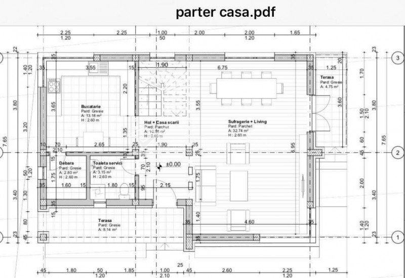 + 3 Vandut Caracteristici Tip locuinta Casa Numar camere 4 Numar bucatarii 1 Numar bai 3 Parcare da Beci nu Gradina nu Suprafata utila 135 m2 Suprafata construita 162 m2 Suprafata teren 440 m2 Etaj 1 Descrierea Casei Welt Imobiliare va ofera spre vanzare vile intr-un proiect care urmeaza sa fie pus in practica in zona Dezmir. Proprietatile vor beneficia de o panorama de exceptie datorita amplasarii in mijlocul naturii, cu numeroase zone verzi dar totodata cu acces facil spre punctele de interes ale imprejurimilor. Va fi dispusa P + E + M fiind compusa din: - parter: living, o bucatarie, o debara, o baie si 2 terase spatioase; - etaj: 3 dormitoare, 2 bai, un dressing si un balcon; - mansarda: spatiu de depozitare. Curtea urmeaza sa fie amenajata cu dale, are acces auto si este imprejmuita cu gard. Merita vazuta! ID Proprietate - P15497 Finisaje Izolatii termice (Exterior), Ferestre cu geam termopan (PVC), Usa intrare (PVC) Vecinatati si puncte de interes in zona Amenajare strazi (Asfaltate, Pietruite), Mijloace de transport in comun Numar vizualizari: 4534 Actualizat: 2020-06-05 10:10:25