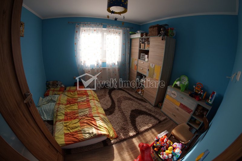 Vanzare casa individuala Dezmir, finisata, zona Campului Dezmir 4 camere • 90 m2 • 430 m2 terenmobilat partial pret vanzare negociabil 128.000 € + 10 + 7 Vandut Caracteristici Tip locuinta Casa Numar camere 4 Numar bucatarii 1 Numar bai 2 Parcare nu Beci nu Gradina nu Suprafata utila 90 m2 Suprafata construita 120 m2 Suprafata teren 430 m2 Struct. rezistenta Caramida An constructie 2018 Descrierea Casei Welt Imobiliare va propune spre vanzare o casa individuala, situata in Dezmir, comuna Apahida. Constructia, finalizata in anul 2018, beneficiaza de o suprafata utila de 90 mp, cu terasa de 25 mp si curte de 300 mp. Are 3 dormitoare separate, un living, bucatarie inchisa si 2 bai. Se vinde finisata si posibil partial mobilata. Casa este conectata la retelele de gaz, electricitate si apa-canal. Dispune, printre altele, de centrala in condensare marca Ariston, calorifere Purmo, geamuri termopan si usi de interior marca Porta Doors, gama Premium. Zona in care se afla este una linistita, cu acces foarte usor spre Cluj. Pentru alte detalii sau pentru programarea unei vizionari nu ezitati sa ma contactati! ID Proprietate - P27647 Finisaje Izolatii termice (Exterior), Pereti (Vopsea lavabila, Faianta), Podele (Parchet, Gresie), Ferestre cu geam termopan (PVC), Usa intrare (Metal), Usi interior (Lemn) Vecinatati si puncte de interes in zona Amenajare strazi (Asfaltate, Pietruite), Iluminat stradal Numar vizualizari: 1321 Actualizat: 2021-03-30 08:50:55