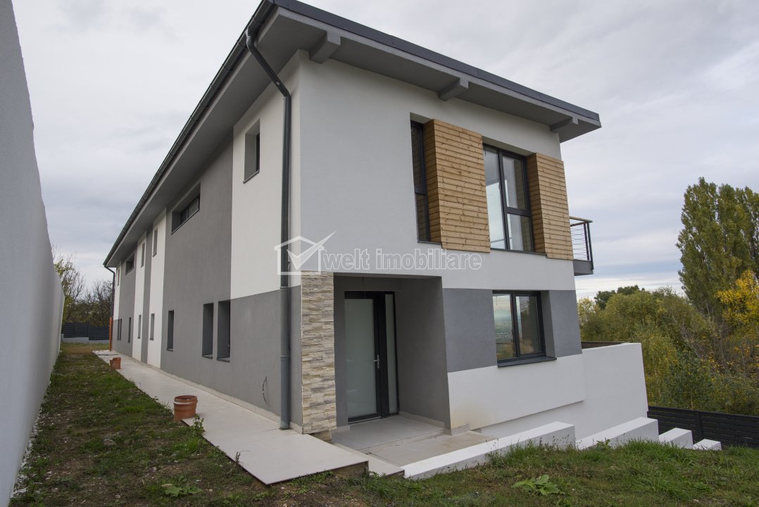 Caracteristici Tip locuinta Casa Numar camere 4 Numar bucatarii 1 Numar bai 4 Numar balcoane 2 Numar terase 1 Suprafata terase 50.00 mp Numar garaje 2 Parcare da Beci nu Gradina nu Suprafata utila 220 m2 Suprafata teren 600 m2 Front 7 m Etaj 1 Struct. rezistenta Caramida An constructie 2025 Disponibilitate imediat Descrierea Casei Descopera confortul si rafinamentul unei locuinte moderne, amplasata intr-o zona linistita, cu panorama spectaculoasa spre oras, departe de agitatia urbana dar suficient de aproape pentru acces rapid catre centrul Clujului. Aceasta unitate de duplex se afla pe un teren generos de 600 mp si dispune de o suprafata utila de 220 mp, utili organizati pe D+P+1E. Constructia este realizata integral din caramida evoceramic, izolata cu polistiren de 15 cm si acoperita cu tabla si izolatie de celuloza de 25 cm, oferind eficienta energetica ridicata. Sistemul de incalzire in pardoseala Rehau, controlat separat pentru fiecare nivel, asigura confort termic optim pe tot parcursul anului. Ferestrele mari, cu geam tripan si profil Salamander de 86 mm, aduc lumina naturala din abundenta si contribuie la o atmosfera calda si primitoare. Compartimentare: Demisol: doua garaje inchise (actionate prin telecomanda), camera tehnica cu baie si spatiu de depozitare; Parter: living spatios cu acces direct pe terasa de 50 mp, bucatarie, baie si spatiu de depozitare; Etaj: trei dormitoare, dintre care doua matrimoniale cu baie proprie, dressing si balcon. Curtea este complet amenajata: pavaj, gard din tabla cu fundatie din beton, poarta automatizata si acces facil pe drum asfaltat. Proprietatea dispune de toate utilitatile si este orientata spre sud, beneficiind de soare si lumina naturala pe tot parcursul zilei. Aceasta unitate de duplex face parte dintr-un ansamblu amplasat pe un teren de 1200 mp, din care ii revine o suprafata de 400 mp, inclusiv cota parte din drum. Daca iti doresti o casa moderna, spatioasa si luminoasa, cu finisaje de calitate si toate avantajele unei locuinte aproape de oras, dar in mijlocul naturii, aceasta este alegerea ideala pentru tine si familia ta. Proprietatea se vinde de pe persoana fizica. Pentru detalii si vizionari, nu ezita sa ne contactezi! ID Proprietate - P51095