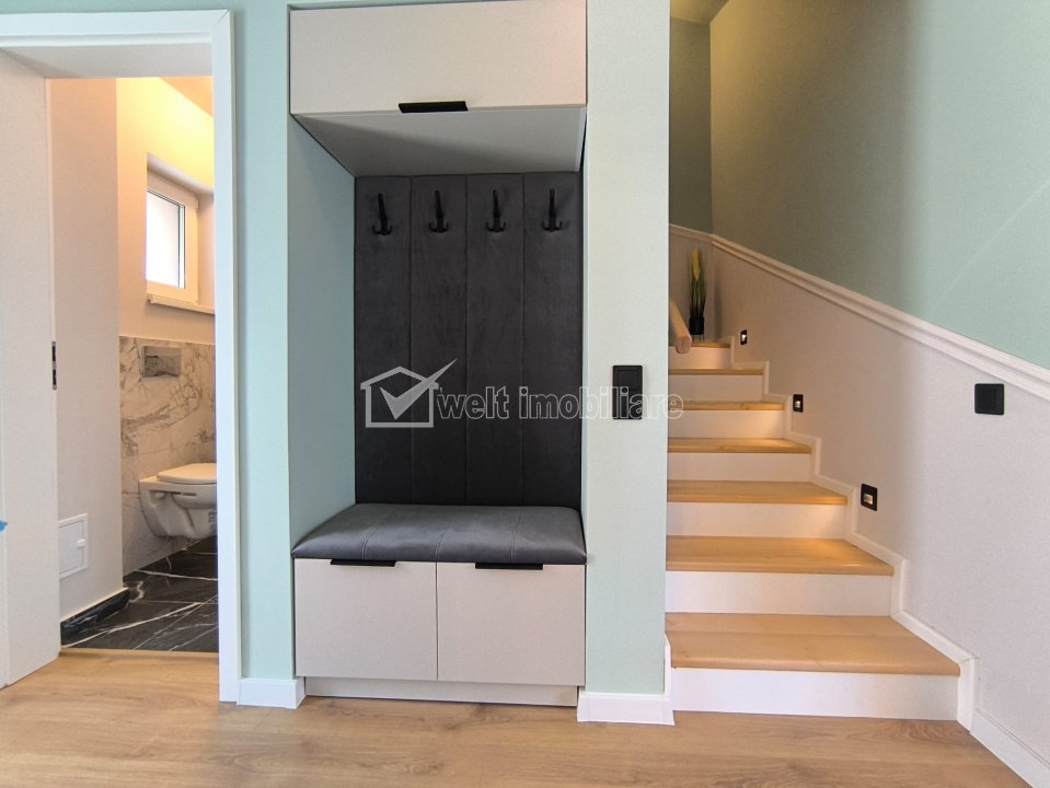 Oportunitate, Casa noua la cheie, Floresti, zona pitoreasca Floresti, zona Sens Giratoriu 4 camere • 79 m2 • 50 m2 terenmobilat lux pret vanzare negociabil 185.000 € + 30 + 27 Vandut Caracteristici Tip locuinta Casa Tip imobil Case insiruite Numar camere 4 Numar bucatarii 1 Numar bai 3 Numar terase 1 Suprafata terase 70.00 mp Parcare da Beci nu Gradina nu Suprafata utila 79 m2 Suprafata construita 150 m2 Suprafata teren 50 m2 Front 8 m Etaj 1 Struct. rezistenta Caramida An constructie 2024 Disponibilitate imediat Descrierea Casei Iti doresti o casa de vis, la pret de apartament? Oportunitate, casa noua la cheie, situata intr-un ansamblu de case noi in Floresti, zona pitoreasca. Welt Imobiliare intermediaza vanzarea unuei case triplex la cheie, situata intr-un ansamblu de case noi, in Floresti, intr-o zona extrem de pitoreasca, retrasa, mai putin circulata, cu multa verdeata si aer curat. Casa este construita pe 2 niveluri, P+1E+Terasa circulara, compartimentarea fiind dupa cum urmeaza: - La parter: hol acces, casa scarii, living+bucatarie, open-space, cu acces din ambele, pe o terasa exterioara, 1 dormitor(birou), 1 baie; - La etaj, 2 dormitoare, 2 bai, casa scarii cu acces, pe o terasa circulara de aproximativ 40 m.p., amenajata pe acoperis; Se vinde la stadiul finisat, mobilat si utilat, cu toate utilitatile: apa, gaz, curent, canalizare, centrala termica montata, functionala, gata la exterior, izolat cu polistiren de 15cm si cu tencuiala decorativa aplicata, alei cu pavaj, 1 parcare exterioara si terasa inierbata; Asa cum se poate observa si din fotografii, casa este finisata si mobilata lux, cu materiale, mobilier si electrocasnice noi, de calitate si de ultima generatie. Doar periuta de dinti iti trebuie, pentru a te muta in ea! Pentru o vizionare, nu ezita sa ne contactezi! Echipa Welt Imobiliare! ID Proprietate: P 47465 ID Proprietate - P47465 Finisaje Izolatii termice (Exterior), Pereti (Vopsea lavabila, Faianta), Podele (Parchet, Gresie), Ferestre cu geam termopan (PVC), Usa intrare (PVC), Usi interior (Lemn) Vecinatati si puncte de interes in zona Amenajare strazi (Asfaltate), Iluminat stradal, Mijloace de transport in comun Numar vizualizari: 521 Actualizat: 2025-05-12 11:51:26