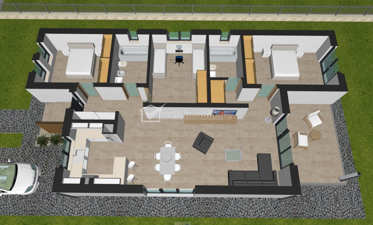 Casa individuala, proiect nou, in zona Jucu de Sus Jucu de Sus 4 camere • 107 m2 • 900 m2 terennemobilat pret vanzare 145.000 € + 7 + 4 Vandut Exclusivitate Caracteristici Tip locuinta Casa Numar camere 4 Numar bucatarii 1 Numar bai 2 Parcare da Beci da Gradina da Suprafata utila 107 m2 Suprafata construita 151 m2 Suprafata teren 900 m2 Front 25 m Struct. rezistenta Caramida An constructie 2022 Disponibilitate imediat Descrierea Casei Welt Imobiliare va propune spre vanzare o casa individuala, semifinisata, un proiect ultramodern intr-un ansamblu splendid, in comuna Jucu, zona Jucu de Sus. Este situata pe un teren de 900 mp si are o suprafata utila de 107 mp, dispusa pe 1 nivel. Compartimentarea este urmatoarea: - 1 living open space cu bucatarie; - 3 dormitoare; - 2 bai - 1 antreu; - 1 dressing; - 2 terase; - pod. - 2 parcari exterioare Se preda in vara anului 2024, la stadiul de semifinisat, cu: - utilitati: apa, curent monofazic si trifazic, gaz, canalizare; - panouri fotovoltaice (5KW); - gradina amenajata complet cu gard(beton+lemn), porti, gazon, pavele si arbusti; - exteriorul casei complet finisat cu decorativa; - izolatie cu polistiren de 10 cm(15 cm la cerere); - acoperis cu tigla. - ferestre termoizolante cu tamplarie PVC(3 sticle); - instalatiile trase pe pozitie; - un strat de glet; - centrala termica proprie + incalzire in pardoseala; Se poate finisa, la cerere. Recomandam aceasta proprietate datorita zonei aerisite, a suprafetei optime, atat cea utila cat si cea a terenului, respectiv a compartimentarii ideale. Pentru programarea unei vizionari, nu ezitati sa ne contactati, Echipa Welt Imobiliare. ID Proprietate - P33230 Finisaje Izolatii termice (Exterior), Ferestre cu geam termopan (PVC), Usa intrare (Metal) Vecinatati si puncte de interes in zona Amenajare strazi (Asfaltate), Iluminat stradal, Mijloace de transport in comun Numar vizualizari: 4067 Actualizat: 2024-01-19 17:19:36