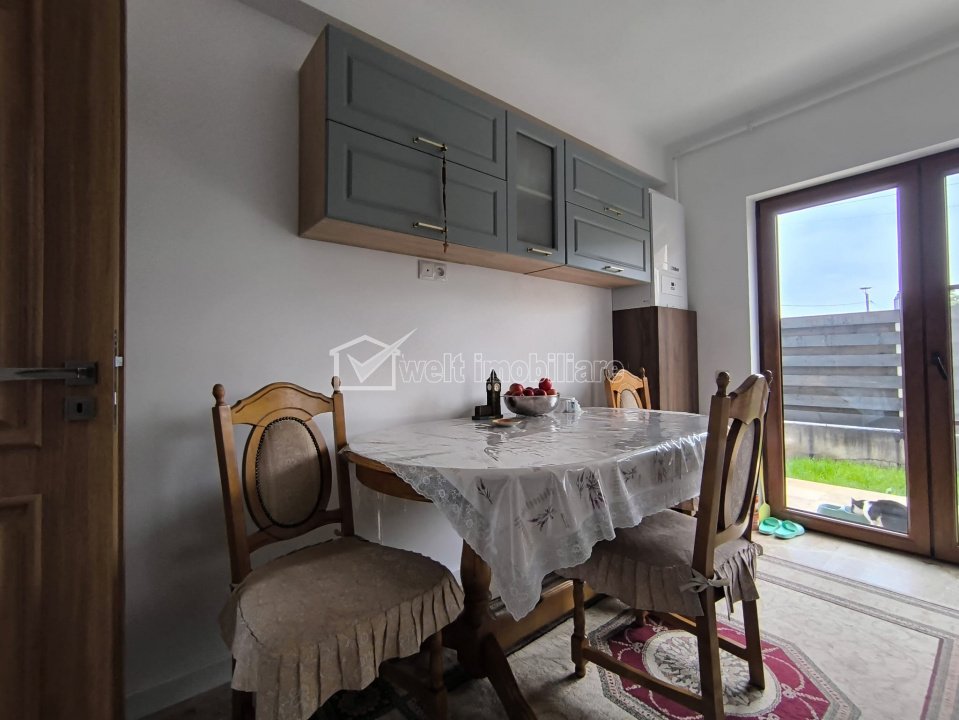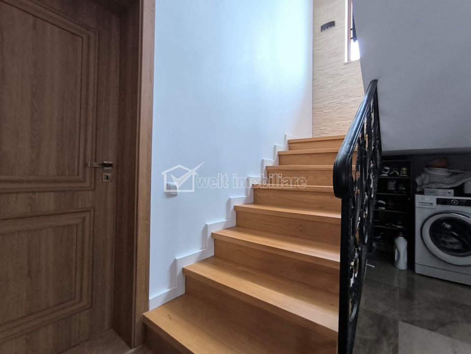 Casa individuala, 5 camere, 120 mp utili, Apahida, strada linistita Apahida 5 camere • 120 m2 • 325 m2 terenmobilat partial pret vanzare negociabil 303.000 € + 25 + 22 Caracteristici Tip locuinta Casa Numar camere 5 Numar bucatarii 1 Numar bai 2 Numar balcoane 1 Numar terase 2 Suprafata terase 60.00 mp Parcare da Beci nu Gradina nu Suprafata utila 120 m2 Suprafata construita 144 m2 Suprafata teren 325 m2 Front 15 m Etaj 1 Struct. rezistenta Caramida An constructie 2023 Disponibilitate 6 luni Descrierea Casei Welt Imobiliare intermediaza, vanzarea unei case individuale cu 5 camere, situata in Apahida, pe o strada linistita si retrasa. Casa este construita pe 2 niveluri: P+1E+Pod, compartimentarea fiind urmatoarea: -La parter: hol acces, casa scarii, living, bucatarie cu iesire pe o terasa exterioara, 1 birou, 1 baie; -La etaj: 3 dormitoare, 1 baie, 1 balcon generos de 11 m.p.; -Podul este mansardabil, iar in prezent este folosit ca spatiu de depozitare; Casa se vinde la stadiul finisat, partial mobilata, este cu acte in regula, fiind ocupabila in 6 luni; Curtea este amenajata cu alei pavate si cu gazon., imprejmuita cu gard si cu porti. Pentru o vizionare, nu ezitati sa ne contactati! Echipa Welt Imobiliare! ID Proprietate: P50895 ID Proprietate - P50895 Finisaje Izolatii termice (Exterior), Pereti (Vopsea lavabila, Faianta), Podele (Parchet, Gresie, Marmura), Ferestre cu geam termopan (PVC), Usa intrare (PVC), Usi interior (Lemn) Vecinatati si puncte de interes in zona Amenajare strazi (Asfaltate), Iluminat stradal, Mijloace de transport in comun Numar vizualizari: 611 Actualizat: 2025-10-08 09:31:37