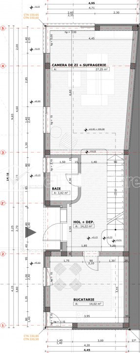 Vanzare casa in zona Liberty, Parcul Feroviarilor, 4 dormitoare, 148 mp Cluj-Napoca, Iris 5 camere • 148.29 m2 • 250 m2 teren pret vanzare 350.000 € 349.000 € + 6 + 3 Vandut Caracteristici Tip locuinta Casa Numar camere 5 Numar bucatarii 1 Numar bai 3 Parcare da Beci nu Gradina da Suprafata utila 148.29 m2 Suprafata construita 207 m2 Suprafata teren 250 m2 Front 9 m Etaj 2 Struct. rezistenta Beton An constructie 2022 Disponibilitate imediat Descrierea Casei Casa individuala, cu iesire la pârâul Nadas, in spate la Liberty Technology Park, pe o strada înfundată de case! Prezinta urmatoarele specificatii: - suprafata utila 148 mp; - regim de înălțime - parter, etaj și etaj retras cu planșeu terasa; - suprafata teren 250 mp: - compartimentare: parter - hol, living cu iesire spre gradina din spate, bucatarie închisă, baie cu geam, spatiu de depozitare sub scara; etaj - doua dormitoare cu baie proprie și cu dressing; etaj retras - doua dormitoare, o baie si 2 terase cu suprafata totala de 22 mp; - detalii tehnice: pereți din cărămida Porotherm cu grosime de 25 cm, termoizolație cu polistiren grafitat cu grosime de 15 cm, fațada partial ventilată, placată cu HPL (lemn natur), pereți interiori vopsiti in alb, sapa egalizare, toate instalațiile termice si electrice la poziție, fiecare camera termostatata individual, exteriorul complet amenajat, cu iarba de gazon, pavaj din piatra naturală, vegetație matura toaletata si loc amenajat pe malul Nadasului; - loc de parcare pavat; - termen de finalizare - Septembrie 2023; - exista posibilitate de predare complet finisata si amenajata după un proiect de arhitectura; - posibilitate de contractare după cum urmează: • avans minim 20% - preț 349.000 euro. ID Proprietate - P33535 Finisaje Izolatii termice (Exterior), Ferestre cu geam termopan (PVC), Rulouri/Obloane (PVC), Usa intrare (PVC) Vecinatati si puncte de interes in zona Parcul Feroviarilor, Piata Liebknicht, Liberty Residential Amenajare strazi (Asfaltate), Iluminat stradal, Mijloace de transport in comun Numar vizualizari: 3360 Actualizat: 2023-03-15 11:10:01