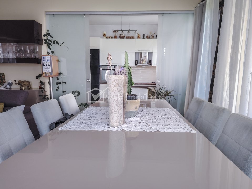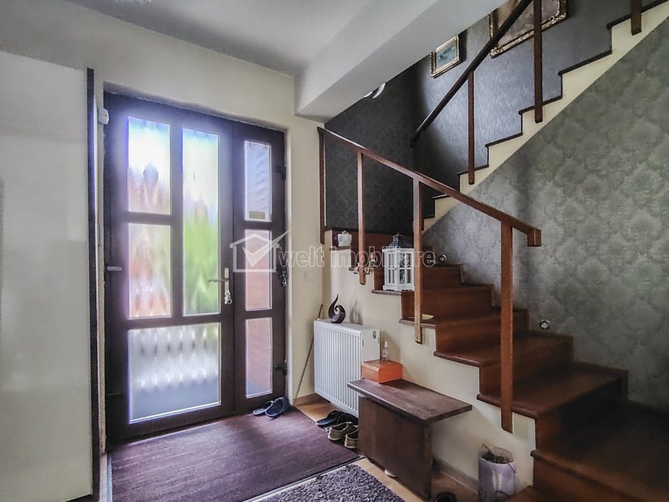 Casa cu teren generos, terasa, parcare si gradina - cartier Iris Cluj-Napoca, Iris 5 camere • 164 m2 • 600 m2 terenmobilat complet pret vanzare negociabil 450.000 € + 22 + 19 Caracteristici Tip locuinta Casa Numar camere 5 Numar bucatarii 1 Numar bai 2 Numar balcoane 1 Numar terase 1 Suprafata terase 10.00 mp Parcare da Beci nu Gradina nu Suprafata utila 164 m2 Suprafata construita 204 m2 Suprafata teren 600 m2 Etaj 1 Struct. rezistenta Caramida An constructie 2008 Disponibilitate imediat Descrierea Casei De vanzare – Casa individuala spatioasa cu teren generos, foișor, sera si dotari complete! Welt Imobiliare va propune spre vanzare o proprietate deosebita amplasata in cartierul Iris, ideala atat pentru locuit, cat si pentru activitati agricole si recreative. Localizare: - cartierul Iris, intr-un complex privat de 8 imobile; - acces securizat prin poarta metalica actionata cu telecomanda; - zona linistita, trafic redus, statie de transport in comun la doar 200 m. Detalii casa: - constructie solida din caramida, finalizata in 2008; - suprafata teren: 600 mp; - amprenta la sol 102 mp; - suprafata utila: 155 mp; - teren liber: 498 mp. Compartimentare: - parter: hol, living, bucatarie, dormitor, baie, 2 spatii de depozitare. - etaj: 3 dormitoare, baie, dressing, balcon. Livingul este separat de hol si bucatarie prin pereti glisanti din sticla; acces direct din living pe terasa acoperita. Podul este izolat cu vata minerala iar pereti izolati exterior cu polistiren de 10 cm. Curtea si facilitatile: - curte amenajata cu gazon; - foișor cu cuptor si gril; - sera moderna, dotata cu sistem de colectare a apei de ploaie si irigare prin picurare; - 3 locuri de parcare (posibilitate acoperire); - toaleta exterioara. Se vinde complet mobilata si utilata. Mobila este de calitate superioara, realizata pe comanda de catre proprietar (profesionist in domeniu). Pret: 450.000 EUR – negociabil. NU SE PERCEPE TVA! ID Proprietate - P42181 Finisaje Izolatii termice (Exterior), Pereti (Vopsea lavabila, Faianta, Tapet), Podele (Parchet, Gresie), Ferestre cu geam termopan (PVC), Usa intrare (Metal), Usi interior (Lemn) Vecinatati si puncte de interes in zona Amenajare strazi (Asfaltate), Iluminat stradal, Mijloace de transport in comun Numar vizualizari: 438 Actualizat: 2025-10-08 11:38:40