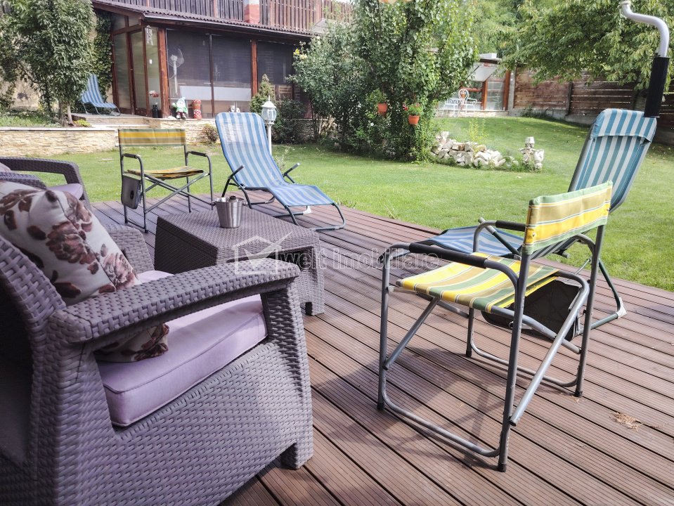 + 22 + 19 Caracteristici Tip locuinta Casa Numar camere 5 Numar bucatarii 1 Numar bai 2 Numar balcoane 1 Numar terase 1 Suprafata terase 10.00 mp Parcare da Beci nu Gradina nu Suprafata utila 164 m2 Suprafata construita 204 m2 Suprafata teren 600 m2 Etaj 1 Struct. rezistenta Caramida An constructie 2008 Disponibilitate imediat Descrierea Casei De vanzare – Casa individuala spatioasa cu teren generos, foișor, sera si dotari complete! Welt Imobiliare va propune spre vanzare o proprietate deosebita amplasata in cartierul Iris, ideala atat pentru locuit, cat si pentru activitati agricole si recreative. Localizare: - cartierul Iris, intr-un complex privat de 8 imobile; - acces securizat prin poarta metalica actionata cu telecomanda; - zona linistita, trafic redus, statie de transport in comun la doar 200 m. Detalii casa: - constructie solida din caramida, finalizata in 2008; - suprafata teren: 600 mp; - amprenta la sol 102 mp; - suprafata utila: 155 mp; - teren liber: 498 mp. Compartimentare: - parter: hol, living, bucatarie, dormitor, baie, 2 spatii de depozitare. - etaj: 3 dormitoare, baie, dressing, balcon. Livingul este separat de hol si bucatarie prin pereti glisanti din sticla; acces direct din living pe terasa acoperita. Podul este izolat cu vata minerala iar pereti izolati exterior cu polistiren de 10 cm. Curtea si facilitatile: - curte amenajata cu gazon; - foișor cu cuptor si gril; - sera moderna, dotata cu sistem de colectare a apei de ploaie si irigare prin picurare; - 3 locuri de parcare (posibilitate acoperire); - toaleta exterioara. Se vinde complet mobilata si utilata. Mobila este de calitate superioara, realizata pe comanda de catre proprietar (profesionist in domeniu). Pret: 450.000 EUR – negociabil. NU SE PERCEPE TVA! ID Proprietate - P42181 Finisaje Izolatii termice (Exterior), Pereti (Vopsea lavabila, Faianta, Tapet), Podele (Parchet, Gresie), Ferestre cu geam termopan (PVC), Usa intrare (Metal), Usi interior (Lemn) Vecinatati si puncte de interes in zona Amenajare strazi (Asfaltate), Iluminat stradal, Mijloace de transport in comun Numar vizualizari: 438 Actualizat: 2025-10-08 11:38:40