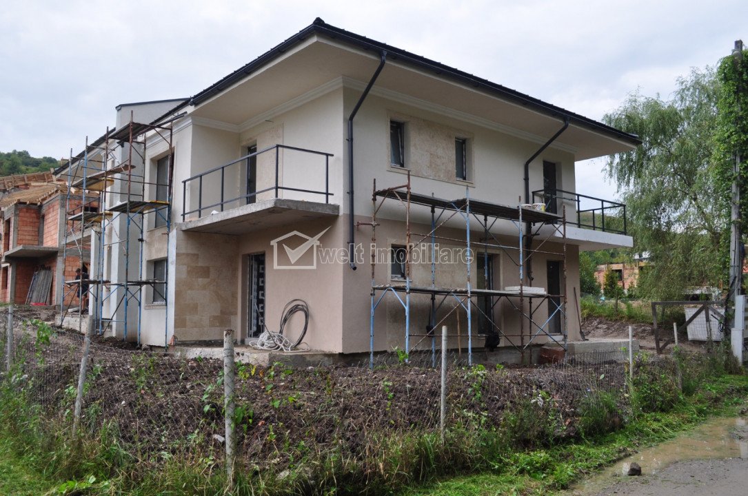 Caracteristici Tip locuinta Casa Numar camere 5 Numar bucatarii 1 Numar bai 3 Parcare da Beci nu Gradina nu Suprafata utila 120 m2 Suprafata construita 200 m2 Suprafata teren 309 m2 Front 13 m Etaj 1 Struct. rezistenta Caramida An constructie 2021 Descrierea Casei Va prezentam un proiect deosebit in zona restaurantului Roata - mult spatiu verde si aer curat. Pentru cei care iubesc natura, dar vor sa fie si aproape de oras, va oferim aceste case unifamiliale cuplate. Fiecare casa are 200 mp construiti, adica 120 mp utili la care se adauga 2 terase si 2 balcoane. Terenul aferent are 308 mp, din care 208 mp sunt curte libera. Casa este compartimentata functional si eficient: - parter - camera de zi, birou/dormitor, bucatarie (deschisa sau se poate inchide), baie, camara, iesire pe terasa si in curte; - etaj - 3 dormitoare, fiecare cu iesire pe balcon, 2 bai - pod pentru depozitare izolat cu celuloza. Sunt prevăzute 2 locuri de parcare in curte. 2 case sunt deja finalizate si 2 case in curs de finalizare. Se poate achizitiona de pe firma (TVA 19% inclus) sau de pe persoana fizica. Mai multe detalii va oferim cu drag telefonic. (ID - P29633). Ioana Tudoran, Welt Imobiliare ID Proprietate - P29633 Finisaje Izolatii termice (Exterior), Ferestre cu geam termopan (PVC), Usa intrare (PVC) Vecinatati si puncte de interes in zona Restaurantul Roata Amenajare strazi (Asfaltate, Pietruite) Numar vizualizari: 3440 Actualizat: 2023-08-25 11:50:39