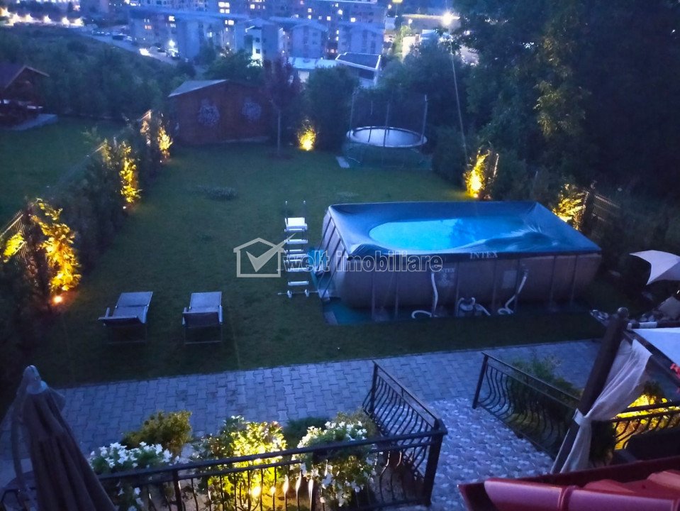 Casa la cheie, oaza de liniste, curte 575 mp, piscina, Vivo Floresti 5 camere • 142 m2 • 575 m2 teren pret vanzare negociabil 380.000 € 370.000 € + 14 + 11 Vandut Caracteristici Tip locuinta Casa Numar camere 5 Numar bucatarii 1 Numar bai 2 Parcare da Beci nu Gradina da Suprafata utila 142 m2 Suprafata construita 164 m2 Suprafata teren 575 m2 Front 16 m Etaj 1 Struct. rezistenta Caramida An constructie 2017 Descrierea Casei Cauti o oaza de liniste si o priveliste deschisa care sa iti permita sa respiri neingradit? Welt Imobiliare va aduce in atentie posibilitate achizitionarii unui imobil cu o suprafata de aproximativ 164 mp construiti (P+E), finalizat in 2017. Se vinde complet utilat si mobilat modern. Terenul aferent este de 575 mp. Casa este compartimentata astfel: - parter: hol, living cu dining si bucatarie, camara, birou, terasa acoperita (40 mp, utilata complet cu mobilier) - etaj: hol casa scarii, 2 balcoane, 3 dormitoare, baie, dressing. Casa este construita din caramida. Utilitati independente: poarta automata, automatizari/sisteme iluminat perimetral si irigatie, sistem de supraveghere video si alarma monitorizate 24h. Are piscina supraterana 6x3m cu sistem de filtrare automat si incalzire cu pompa de caldura, magazie de unelte, gazon premium cu sistem de irigare prin aspersoare. Panorama este deosebita. Casa se afla intr-o zona de case cu regim de inaltime P+E; constructii finalizate imprejur. CF-ul este curat. Toate utilitatile sunt prezente: apa, canalizare, gaz, curent, fibra optica de mare viteza. ID P28896 ID Proprietate - P28896 Finisaje Izolatii termice (Exterior), Pereti (Vopsea lavabila, Faianta), Podele (Parchet, Gresie), Ferestre cu geam termopan (PVC), Rulouri/Obloane (Aluminiu), Usa intrare (PVC), Usi interior (Lemn) Vecinatati si puncte de interes in zona Vivo, Metro Amenajare strazi (Asfaltate), Iluminat stradal, Mijloace de transport in comun Numar vizualizari: 4747 Actualizat: 2021-08-19 11:19:33