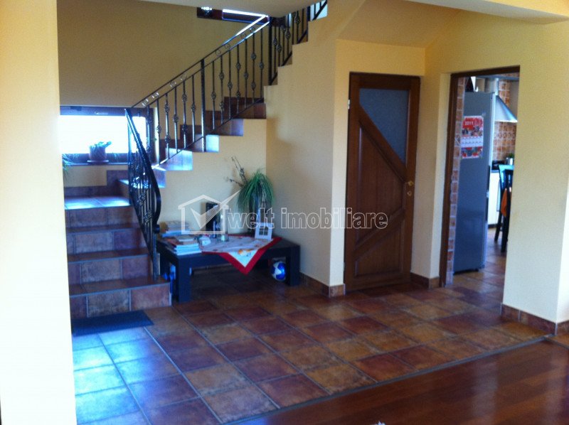 Caracteristici Tip locuinta Casa Numar camere 5 Numar bucatarii 1 Numar bai 3 Parcare da Beci da Gradina nu Suprafata utila 280 m2 Suprafata construita 330 m2 Suprafata teren 870 m2 Front 14 m Etaj 1 Struct. rezistenta Caramida Disponibilitate imediat Descrierea Casei Vand vila in Floresti intr-o zona linistita si verde, fara blocuri in apropiere. Vila se afla pe un teren de 870 de mp, suprafata utila este de 280 mp iar amprenta la sol este de 100 mp. Are drum de acces. Este construita din caramida pe fundatie din beton si are dispunerea pe niveluri D+P+E+M dupa cum urmeaza : la demisol un beci, un hol si o camera tehnica (centrala, masina de spalat, uscator); la parter doua terase (una in fata si una in spatele casei cu acces la gradina), o bucatarie, un living, o baie si doua holuri (pe suprafata bucatarie-hol-baie este incalzire in pardoseala); la etaj trei camere, doua dressinguri, doua bai, doua balcoane-terase si un hol; la mansarda doua camere (una dintre ele are 50 mp). Vila este superfinisata, gresie, faianta, parchet, balustradele din interior si de pe terase sunt din fier forjat, usa de la intrare are vitraliu, toate geamurile si usile sunt din lemn stratificat cu geam termopan si folie antiefractie. Curtea se intinde in fata, in lateralul vilei si in spate (unde este cea mai mare suprafata) proprietatea fiind imprejmuita cu gard cu fundatie de beton. Are interfon, sistem de supraveghere video si alarma, poarta este cu telecomanda. Casa se vinde partial mobilata ! Pret 159.000 euro!! ID Proprietate - P12617 Finisaje Izolatii termice (Exterior), Pereti (Vopsea lavabila, Faianta), Podele (Parchet, Gresie), Ferestre cu geam termopan (PVC), Usa intrare (Metal) Vecinatati si puncte de interes in zona Amenajare strazi (Asfaltate), Iluminat stradal, Mijloace de transport in comun Numar vizualizari: 577 Actualizat: 2023-08-17 15:46:54