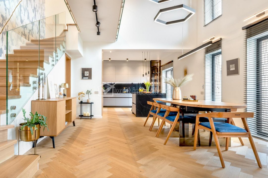 Vila moderna si spatioasa 245mp, cartier Terra Floresti Floresti, zona Terra 5 camere • 243 m2 • 665 m2 terenmobilat lux pret vanzare negociabil 838.000 € + 9 + 6 Caracteristici Tip locuinta Casa Numar camere 5 Numar bucatarii 1 Numar bai 3 Numar terase 1 Suprafata terase 35.00 mp Numar garaje 1 Parcare da Beci nu Gradina da Suprafata utila 243 m2 Suprafata construita 319 m2 Suprafata teren 665 m2 Etaj 1 Struct. rezistenta Beton An constructie 2023 Disponibilitate imediat Descrierea Casei Locuința este mobilată și utilată complet, cu finisaje premium și design minimalist, care combină materiale naturale de calitate pentru o atmosferă caldă și confortabilă. Structura casei oferă amplitudine și luminozitate în zonele de zi, iar funcționalitatea și eficiența energetică sunt optimizate pentru confortul întregii familii: - Parter: bucătărie, zona de luat masa cu înălțime liberă de 6 m, living cu șemineu pe lemne, baie de serviciu, dormitor matrimonial cu dressing și baie proprie, garaj, cameră tehnică - Etaj: 3 dormitoare, dressing, baie, spălătorie Suprafata utila totala 243mp pe teren de 665mp. Dotări: jaluzele electrice opace și ventilație mecanică descentralizată cu aport de aer proaspăt în dormitoare, încălzire în pardoseală, centrală pe gaz cu rezervor 200 l, sistem automat de irigații, zonă exterioară cu terasă acoperită cu pergole retractabile, canapea și zonă de luat masa, chiuvetă și zona de BBQ, 4 locuri de parcare (1 garaj interior + 3 exterioare). Acces semaforizat la intersecția cu DN1/E60, cu posibilitatea de a vira la stânga în ambele direcții, spre și dinspre Cluj-Napoca și Autostrada A3. Lângă cartier este în construcție o școală pentru 1.300 elevi, iar la 5 minute se construiește cel mai nou centru comercial: Urbano Shopping & Living. Cartierul Terra, Florești, un ansamblu cu acces controlat și spații verzi private, cu loc de joacă pentru copii, cu un concept de cartier aerisit, inspirat din suburbiile americane. Casele sunt retrase 6 m față de drum, iar fiecare proprietar deține cotă parte din drumurile interioare și spațiile comune. Cartierul oferă o comunitate sigură și prietenoasă, gândită să ofere cele mai ridicate standarde de viață pentru copii și adulți, cu zone de relaxare, socializare și activități în aer liber. Optiune pentru investitori: vanzatorul poate ramane in chirie contra plata unei chirii ultra premium! ID Proprietate - P53897 Finisaje Izolatii termice (Exterior), Pereti (Vopsea lavabila), Podele (Parchet, Gresie, Marmura), Jaluzele (Verticale), Usa intrare (Metal), Usi interior (Lemn) Vecinatati si puncte de interes in zona cartier Terra Floresti Amenajare strazi (Asfaltate), Iluminat stradal, Mijloace de transport in comun Numar vizualizari: 43 Actualizat: 2026-03-11 17:23:58