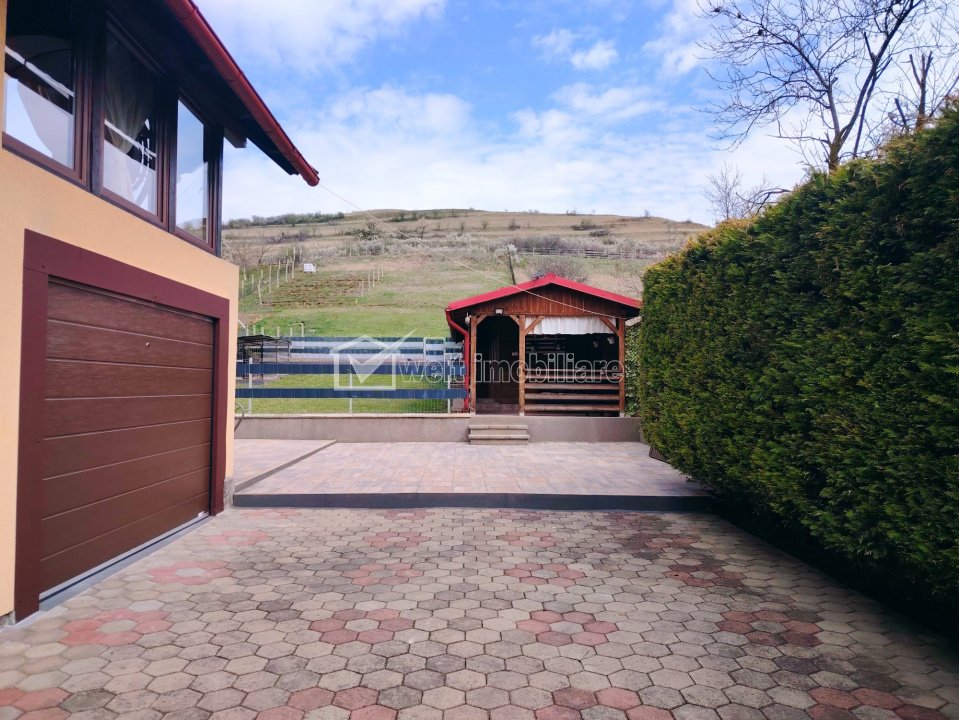 Caracteristici Tip locuinta Casa Numar camere 5 Numar bucatarii 2 Numar bai 2 Numar balcoane 2 Numar terase 1 Suprafata terase 11.00 mp Numar garaje 1 Parcare da Beci da Gradina da Suprafata utila 140 m2 Suprafata construita 175 m2 Suprafata teren 1000 m2 Front 15 m Etaj 1 Struct. rezistenta Caramida An constructie 2020 Disponibilitate imediat Descrierea Casei Welt Imobiliare intermediaza vanzarea unei case individuale moderne, situata in localitatea Iara, la poalele Muntilor Apuseni – o proprietate ideala pentru cei care isi doresc confort premium, liniste si un stil de viata sanatos, aproape de natura. Imobilul este construit in anul 2020, pe un teren generos de 1000 mp, avand regim de inaltime S+P+E si o suprafata utila de 145 mp, la care se adauga 25 mp terase, balcon de 8 mp, beci de 40 mp, camera tehnica de 6 mp si garaj de 18 mp. Compartimentarea este gandita eficient, cu spatii ample si luminoase: Parter: hol, baie, bucatarie foarte mare cu loc de luat masa, living spatios si terasa Etaj: hol, baie, 2 dormitoare, un living foarte generos, balcon si terasa inchisa cu acces din ambele dormitoare Constructia este realizata din caramida (parter) si BCA (etaj), cu placa de beton intre nivele, izolata cu polistiren de 10 cm si acoperita cu tabla. Incalzirea se face prin centrala inteligenta pe peleti si calorifere. Casa se preda complet finisata si mobilata modern, fiind pregatita pentru mutare imediata. Exteriorul este la fel de bine gandit: - curte pavata, amenajata cu gard viu din tuia; - gradina separata, ideala pentru agricultura sau cresterea animalelor; - anexa complet functionala (bucatarie, camera, baie, spatiu depozitare) – perfecta pentru activitati zilnice sau locuinta secundara; - multiple spatii de depozitare la subsol; - garaj cu usa automatizata. Utilitati: apa, curent, fosa septica, fibra optica. Accesul se face pe drum pietruit, cu perspective de asfaltare. Localizarea este excelenta: - 37 km de Cluj-Napoca - 31 km de Turda - acces rapid, maxim 1 ora in conditii de trafic intens - in apropiere: magazine (Profi, La Doi Pasi), scoala, spital, farmacie Un avantaj major il constituie faptul ca o proprietate similara in Cluj-Napoca ar avea o valoare de cel putin 600.000 euro. Alegand aceasta casa, economisesti aproximativ 300.000 euro, fara a face compromis la confort sau calitate, ba dimpotriva – castigi spatiu, aer curat si un stil de viata echilibrat. Aceasta proprietate este ideala pentru: - familii care muncesc in sistem hibrid, isi doresc liniste si siguranta; - iubitori de natura si aer curat; - persoane care vor autonomie alimentara (gradina, animale); - iubitori de animale; - cei care cauta un stil de viata sanatos, departe de aglomeratia urbana. Traiul aici inseamna mai mult decat o casa – inseamna libertate, echilibru si conexiune cu natura. Pentru mai multe detalii sau programarea unei vizionari, va stam cu drag la dispozitie. ID Proprietate - P54875 Finisaje Izolatii termice (Exterior), Pereti (Vopsea lavabila, Faianta), Podele (Parchet, Gresie), Usa intrare (PVC), Usi interior (Celulare) Vecinatati si puncte de interes in zona Magazin La Doi Pasi, Profi, Scoala Gimnaziala, Spital, Farmacie, Primarie, Pizzerie Amenajare strazi (Pietruite) Numar vizualizari: 26 Actualizat: 2026-04-29 01:01:38