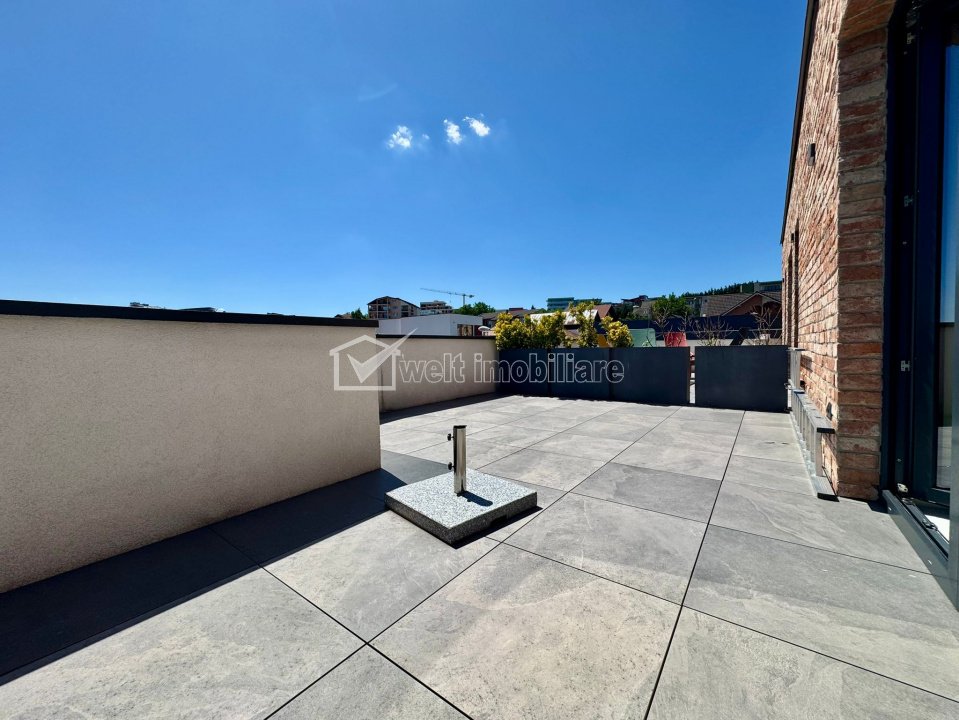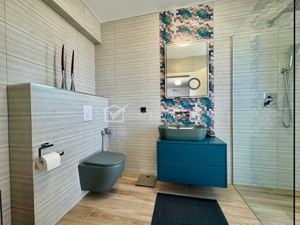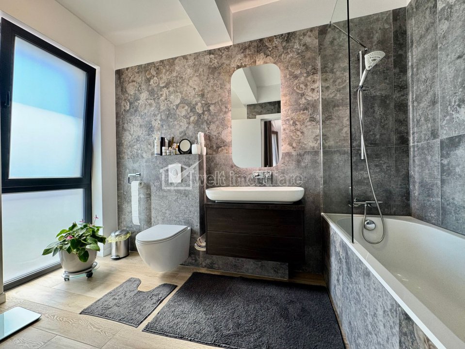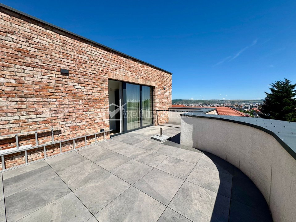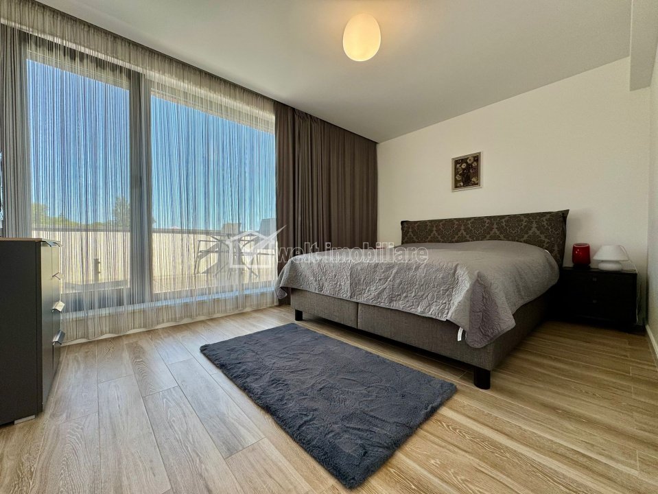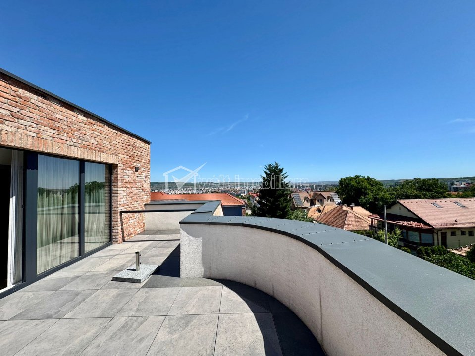 Caracteristici Tip locuinta Casa Numar camere 6 Numar bucatarii 1 Numar bai 5 Numar balcoane 1 Numar terase 3 Suprafata terase 40.00 mp Numar garaje 2 Parcare nu Beci da Gradina da Suprafata utila 186 m2 Suprafata construita 240 m2 Suprafata teren 423 m2 Front 15 m Etaj 1 Struct. rezistenta Caramida An constructie 2022 Disponibilitate Imediata Descrierea Casei Welt Imobiliare va aduce in atentie posibilitatea achizitionarii unei case de tip duplex pe nisa de lux, in Andrei Muresanu, cu vedere panoramica (de exceptie) spre oras. Dimensiunile sunt generoase, mult peste ceea ce ofera un duplex obisnuit. Are urmatoarea compartimentare: D: garaj dublu, acces imobil P: hol, bucatarie, camera de zi, birou, baie, terasa, curte amenajata. E1: 3 dormitoare, dressing, 3 bai, spalatorie, terase. Er: dormitor, baie, 2 terase cu panorama frumoasa. Aceasta are o suprafata utila de 186 mp si este amplasata pe un teren de 405 mp. Terenul imprejmuit si amenajat dupa un proiect de peisagistica (iarba de gazon, arbori, vegetatie etc.). Din punct de vedere constructiv, proiectul a atins cele mai inalte standarde si nu s-a facut rabat la calitate. Această proprietate nu este doar o locuință, ci o declarație de stil și succes, destinată celor care apreciază unicitatea, poziția, lumina naturală și spațiul generos într-un oraș aflat în plină dezvoltare. Contactează-ne acum pentru detalii sau o vizionare privată. ID Proprietate - P10356 Finisaje Izolatii termice (Exterior), Pereti (Vopsea lavabila, Var, Faianta), Podele (Parchet, Gresie), Usa intrare (Metal), Usi interior (Celulare) Vecinatati si puncte de interes in zona Amenajare strazi (Asfaltate, Betonate), Iluminat stradal Numar vizualizari: 938 Actualizat: 2025-10-21 16:53:18