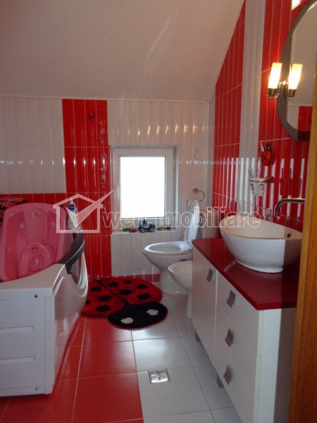 Imobil deosebit, individual, strada inchisa, 431 mp curte, Gruia, Cluj-Napoca, Gruia 6 camere • 270 m2 • 431 m2 terenmobilat lux pret vanzare negociabil 449.500 € + 21 + 18 Vandut Caracteristici Tip locuinta Casa Numar camere 6 Numar bucatarii 1 Numar bai 2 Numar garaje 2 Parcare da Beci da Gradina da Suprafata utila 270 m2 Suprafata construita 314 m2 Suprafata teren 431 m2 Front 22 m Etaj 1 Struct. rezistenta Beton An constructie 2009 Descrierea Casei Liniste, confort si siguranta in Gruia. Conditii de locuit deosebite, intr-o atmosfera luminoasa si aerisita. Welt Imobiliare va aduce in atentie o casa, in cartierul Gruia, construita pentru a satisface toate conditiile de confort si calitate necesare unei locuiri. Dispusa pe patru niveluri, demisol + parter inalt + etaj + pod, casa este compartimentata astfel: - demisol - doua garaje, camera tehnica, spatiu de depozitare, crama, casa scarii; - parter inalt - living, bucatarie, dormitor, baie, dressing, hol intrare, casa scarii, doua terase (una cu iesire din living si cealalta cu iesire din bucatarie); - etaj - hol-living, trei dormitoare, baie, dressing, casa scarii, acces la pod; - pod - podit si izolat termic, cu o suprafata de 60 mp locuibili (1.80 m - inaltime). Certificat energetic clasa A. ID Proprietate - P22035 Finisaje Izolatii termice (Exterior, Interior), Pereti (Vopsea lavabila, Faianta, Tapet), Podele (Parchet, Gresie), Ferestre cu geam termopan (PVC), Usa intrare (PVC) Vecinatati si puncte de interes in zona Muzeul Etnografic, Amenajare strazi (Asfaltate, Betonate), Iluminat stradal, Mijloace de transport in comun Numar vizualizari: 6291 Actualizat: 2021-06-03 12:14:21