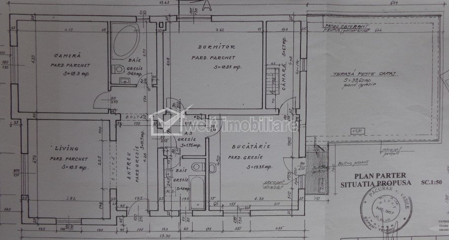 + 11 + 8 Vandut Caracteristici Tip locuinta Casa Numar camere 6 Numar bucatarii 1 Numar bai 2 Numar garaje 2 Parcare da Beci da Gradina da Suprafata utila 185 m2 Suprafata construita 262 m2 Suprafata teren 830 m2 Front 16 m Etaj 1 Struct. rezistenta Caramida An constructie 2008 Disponibilitate imediat Descrierea Casei Cauti spatiu sa te desfasori ca birouri, locuinta sau alte destinatii? Welt Imobiliare va aduce in atentie posibilitatea achizitionarii unui apartament intr-o vila din Gruia, in proximitatea Stadionului CFR - Dr. Constantin Radulescu, la numai 350 m de parcul Cetatuia, 900 m de Gara si 900 de magazinul Central si Pta. Mihai Viteazu, cu vedere peste Dambul Rotund si curte proprie 351 mp (in realitate 540mp). Dispus pe doua niveluri cu intrari separate, apartamentul este utilizat ca spatiu de birouri si este compartimentat astfel: - demisol - 78,5 mp - 2 boxe garaj amenajate ca un interior locuibil 31,5 mp cu acces in pivnita/crama - 23.3 mp (inaltime pivnita - 2.10m). - magazie 16,4 mp si pivnita 7.3 mp - transformate intr-un mic studio. - acces separat la garaje cat si la micul studio. - parter - 98,2 mp utili - complet decomandat - hol acces, living, bucatarie cu camara, hol, 2 dormitoare, 2 bai. Terasa 40 mp - peste garaje, cu iesire din bucatarie. Apartamentul dispune, pe langa spatiile comune conform CF-ului colectiv, de 351 mp (in realitate 540mp) teren/gradina pe CF individual, aparte. In cladire sunt 3 apartamente, celelalte doua (etajul 1 si mansarda) avand intrare separata. Exista un credit ipotecar pe apartament care se va stinge odata cu incheierea tranzactiei. Disponibilitate imediata. ID P38167 ID Proprietate - P38167 Finisaje Izolatii termice (Exterior), Pereti (Vopsea lavabila, Faianta), Podele (Parchet, Gresie), Ferestre cu geam termopan (PVC), Jaluzele (Orizontale), Usa intrare (Metal), Usi interior (Lemn) Vecinatati si puncte de interes in zona Stadion CFR, 7 Strazi, Gruia Amenajare strazi (Asfaltate, Betonate), Iluminat stradal, Mijloace de transport in comun Numar vizualizari: 1956 Actualizat: 2024-04-15 17:15:04