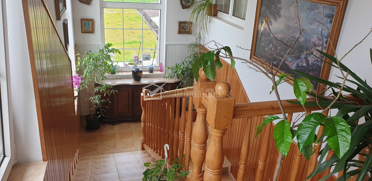 Caracteristici Tip locuinta Casa Numar camere 6 Numar bucatarii 1 Numar bai 2 Parcare da Beci nu Gradina nu Suprafata utila 220 m2 Suprafata construita 264 m2 Suprafata teren 2545 m2 Etaj 1 An constructie 2008 Disponibilitate imediat Descrierea Casei De vanzare casa individuala in localitatea Feleacu. Casa ofera o panorama spectaculoasa si are un teren generos, plat, de 2545 mp. Regim de inaltime parter, etaj si mansarda. Parter: hol, sufragerie, dormitor, bucatarie, baie, camara, terasa inchisa si acoperita. Etaj: camera de zi, birou, dormitor, dressing, baie, terasa cu vedere spre Cluj. Mansarda: camera si open space care se poate compartimenta. Casa se afla intr-o zona linistita, cu acces usor. Daca nu se doreste cumpararea intregii suprafete de teren, exista si varianta unei dezmembrari. ID Proprietate - P38293 Vecinatati si puncte de interes in zona Partia schi Numar vizualizari: 1151 Actualizat: 2023-11-21 14:39:13