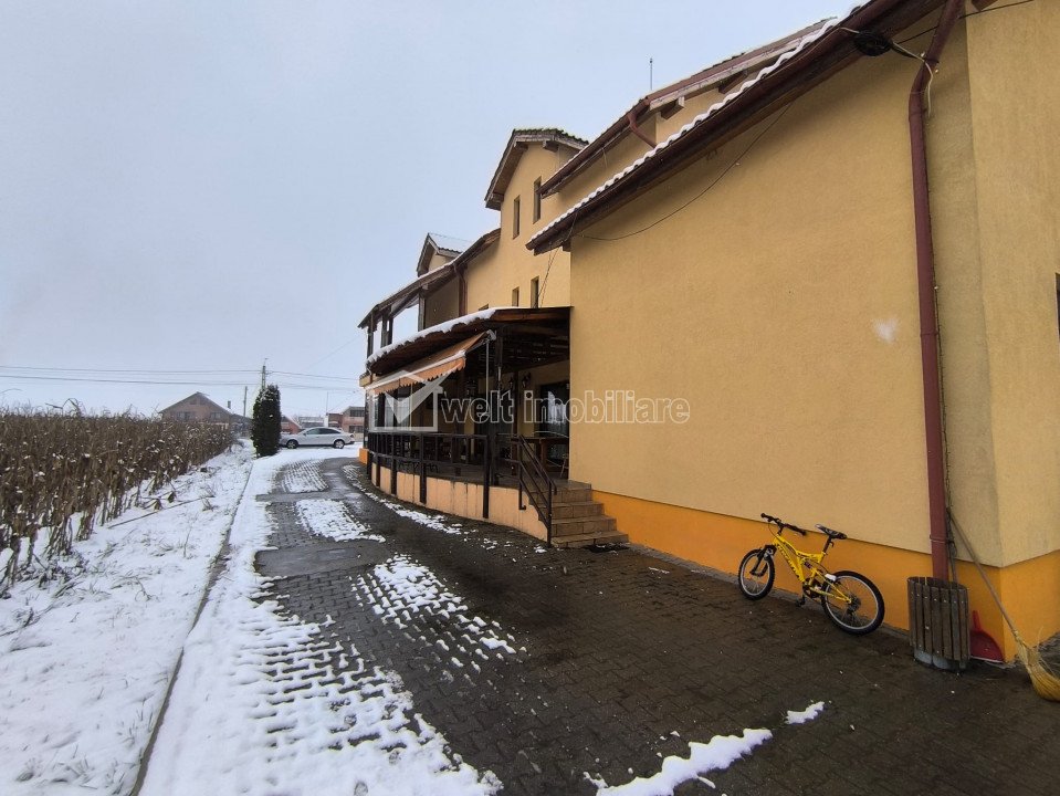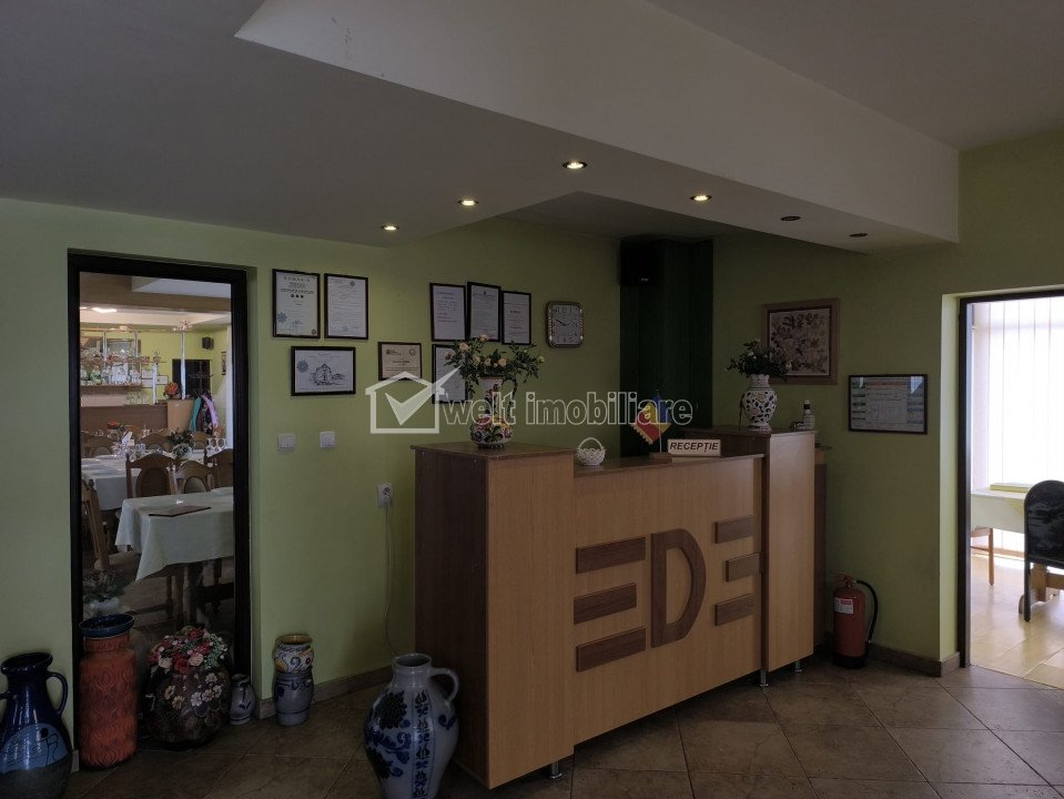 + 48 + 45 Vandut Caracteristici Tip spatiu Hotel/Pensiune Suprafata utila 722 m2 Nr. incaperi 10 Bai 12 Nr. parcari 7 Nr. garaje -- Tip imobil -- Etaj /1 Regim de inaltime D+P+1E+M Constructie din BCA Anul constructiei 2008 Sup. construita 866 m2 Suprafata curte -- Disponibilitate imediat Descrierea imobilului Welt Imobiliare va propune o oportunitate de investiție în județul Cluj! Pensiune cu restaurant și spațiu pentru evenimente, de vânzare. Visezi să devii proprietar al unei afaceri de succes în domeniul turismului? Avem pentru tine o oportunitate deosebită! O pensiune amplasată într-o localitate pitorească din județul Cluj, este disponibilă pentru vânzare. Cu un peisaj de vis și o locație ideală pentru turiști și evenimente, această pensiune reprezintă un loc perfect pentru relaxare, dar și pentru organizarea de evenimente speciale. Ce oferă pensiunea: Camere de cazare confortabile, amenajate cu bun gust; Restaurant cu specific tradițional, perfect pentru mesele de zi cu zi sau evenimente speciale; Spațiu adecvat pentru organizarea de nunți, botezuri, conferințe și alte evenimente; Locație liniștită, în mijlocul naturii, accesibilă și ușor de găsit; Fie că vrei să continui activitatea de pensiune sau să dezvolți noi proiecte, această proprietate reprezintă o investiție solidă! Nu rata ocazia de a deveni proprietar al unei afaceri de succes într-o zonă turistică apreciată! Pensiunea este situata in jud. Cluj, pe DN1C. Aceasta dispune de 10 camere pentru cazare, restaurant cu bar si o terasa acoperita, precum si o suprafata aferenta de 2400 m.p. teren. Capacitatea restaurantului pentru organizare de evenimente, este de 80 de persoane, iar a terasei de 30 de persoane(pe timpul sezonului cald). Proprietatea se vinde la pachet, cu societatea care o detine in patrimoniu, avand toate avizele necesare de functionare, la zi. Cladirea pensiunii este dispusa pe 4 niveluri: S+P+1E+M, compartimentarea fiind dupa cum urmeaza: -La subsol: camera centralei termice, adapost(beci), hol scara; -La parter: hol intrare, receptie, birou, 2 grupuri sanitare, sala de mese, bar, bucatarie, depozit bar, depozit bucatarie, hol scari; -La etaj: 5 camere de cazare cu bai proprii, oficiu pentru camerista, balcon, terasa acoperita, hol circulatie, spalator, uscator, 2 vestiare; -La mansarda: hol scara, 5 camere cu bai proprii, oficiu camerista, balcon inchis; Curtea este amenajata, avand 7 locuri de parcare in partea din fata, iar la nevoie se poate parca si in spatele pensiunii. Pentru mai multe detalii și pentru a programa o vizionare, te rugăm să ne contactezi! Echipa Welt Imobiliare! ID Proprietate: P 47376 ID Proprietate - P47376 Utilitati Utilitati generale: Electricitate, Curent trifazic, Apa, Gaz, CanalizareSistem de incalzire: CalorifereClimatizare: Aer conditionat Finisaje: Izolatii termice (Exterior), Podele (Parchet, Gresie), Ferestre cu geam termopan (PVC) Dotari: Contorizare (Apometre, Contor gaz), Dotari imobil (Curte, Gradina) Vecinatati si puncte de interes in zona Amenajare strazi (Asfaltate), Iluminat stradal, Mijloace de transport in comun Numar vizualizari: 746 Actualizat: 2025-10-16 14:18:47
