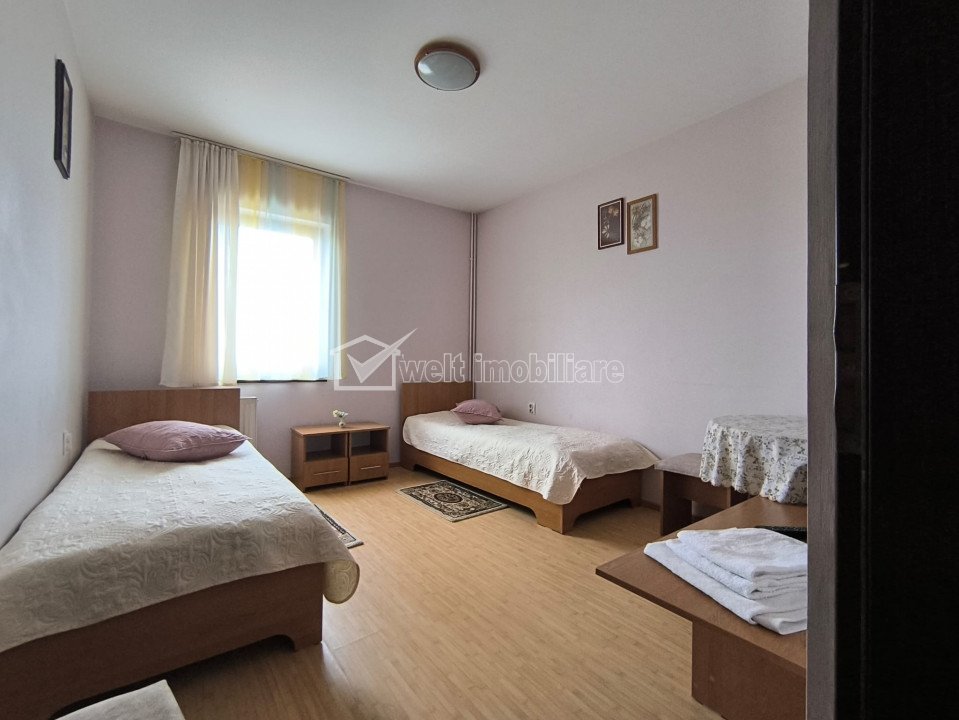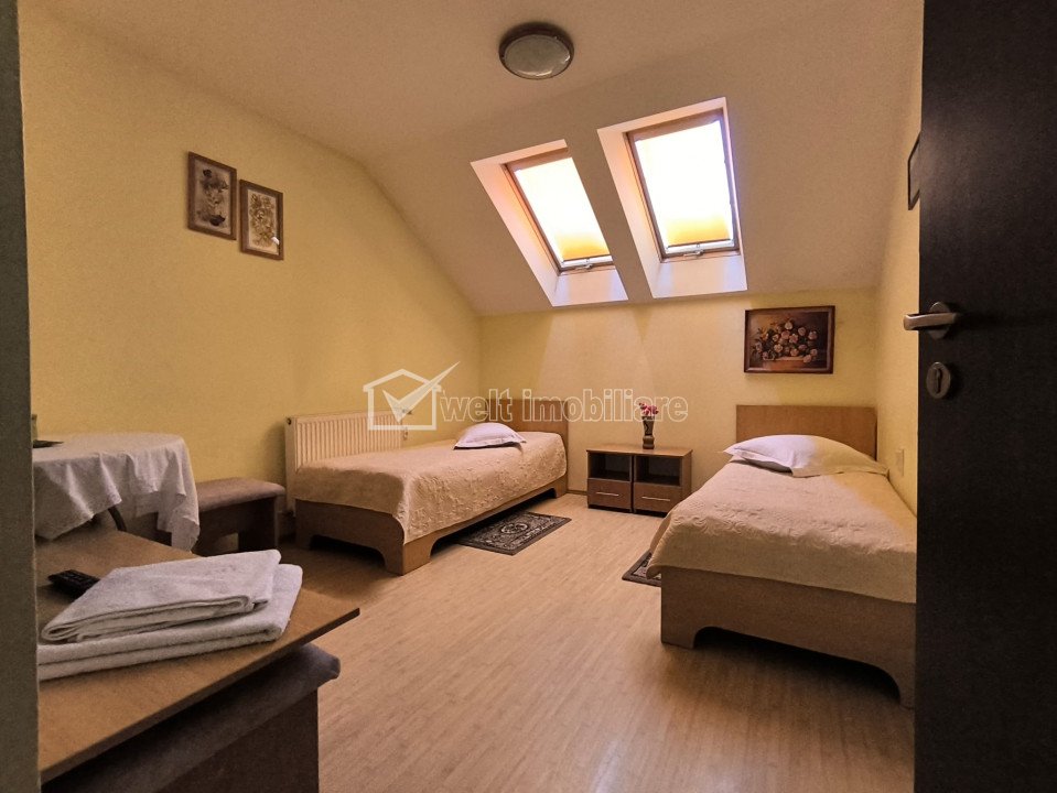Pensiune 10 camere, cu toate avizele, DN1C, jud. Cluj Caseiu 10 camere • 722 m2 pret vanzare negociabil 500.000 € + 48 + 45 Vandut Caracteristici Tip spatiu Hotel/Pensiune Suprafata utila 722 m2 Nr. incaperi 10 Bai 12 Nr. parcari 7 Nr. garaje -- Tip imobil -- Etaj /1 Regim de inaltime D+P+1E+M Constructie din BCA Anul constructiei 2008 Sup. construita 866 m2 Suprafata curte -- Disponibilitate imediat Descrierea imobilului Welt Imobiliare va propune o oportunitate de investiție în județul Cluj! Pensiune cu restaurant și spațiu pentru evenimente, de vânzare. Visezi să devii proprietar al unei afaceri de succes în domeniul turismului? Avem pentru tine o oportunitate deosebită! O pensiune amplasată într-o localitate pitorească din județul Cluj, este disponibilă pentru vânzare. Cu un peisaj de vis și o locație ideală pentru turiști și evenimente, această pensiune reprezintă un loc perfect pentru relaxare, dar și pentru organizarea de evenimente speciale. Ce oferă pensiunea: Camere de cazare confortabile, amenajate cu bun gust; Restaurant cu specific tradițional, perfect pentru mesele de zi cu zi sau evenimente speciale; Spațiu adecvat pentru organizarea de nunți, botezuri, conferințe și alte evenimente; Locație liniștită, în mijlocul naturii, accesibilă și ușor de găsit; Fie că vrei să continui activitatea de pensiune sau să dezvolți noi proiecte, această proprietate reprezintă o investiție solidă! Nu rata ocazia de a deveni proprietar al unei afaceri de succes într-o zonă turistică apreciată! Pensiunea este situata in jud. Cluj, pe DN1C. Aceasta dispune de 10 camere pentru cazare, restaurant cu bar si o terasa acoperita, precum si o suprafata aferenta de 2400 m.p. teren. Capacitatea restaurantului pentru organizare de evenimente, este de 80 de persoane, iar a terasei de 30 de persoane(pe timpul sezonului cald). Proprietatea se vinde la pachet, cu societatea care o detine in patrimoniu, avand toate avizele necesare de functionare, la zi. Cladirea pensiunii este dispusa pe 4 niveluri: S+P+1E+M, compartimentarea fiind dupa cum urmeaza: -La subsol: camera centralei termice, adapost(beci), hol scara; -La parter: hol intrare, receptie, birou, 2 grupuri sanitare, sala de mese, bar, bucatarie, depozit bar, depozit bucatarie, hol scari; -La etaj: 5 camere de cazare cu bai proprii, oficiu pentru camerista, balcon, terasa acoperita, hol circulatie, spalator, uscator, 2 vestiare; -La mansarda: hol scara, 5 camere cu bai proprii, oficiu camerista, balcon inchis; Curtea este amenajata, avand 7 locuri de parcare in partea din fata, iar la nevoie se poate parca si in spatele pensiunii. Pentru mai multe detalii și pentru a programa o vizionare, te rugăm să ne contactezi! Echipa Welt Imobiliare! ID Proprietate: P 47376 ID Proprietate - P47376 Utilitati Utilitati generale: Electricitate, Curent trifazic, Apa, Gaz, CanalizareSistem de incalzire: CalorifereClimatizare: Aer conditionat Finisaje: Izolatii termice (Exterior), Podele (Parchet, Gresie), Ferestre cu geam termopan (PVC) Dotari: Contorizare (Apometre, Contor gaz), Dotari imobil (Curte, Gradina) Vecinatati si puncte de interes in zona Amenajare strazi (Asfaltate), Iluminat stradal, Mijloace de transport in comun Numar vizualizari: 746 Actualizat: 2025-10-16 14:18:47
