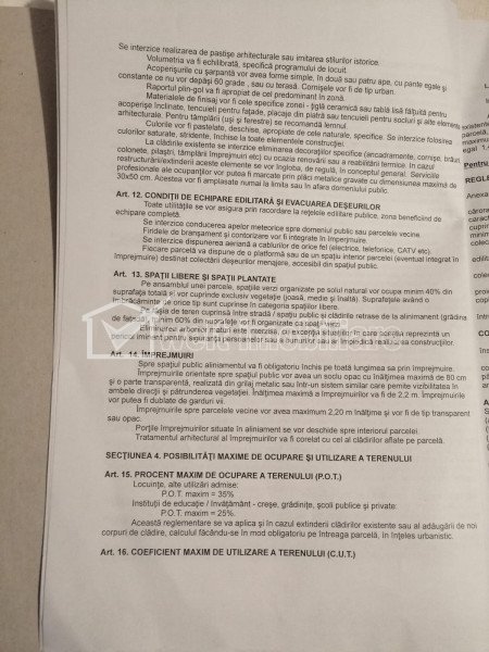 Caracteristici Tip imobil Teren intravilan Teren pentru constructii civile Suprafata 860 m2 Front 15 m Nr. fronturi 1 Latime drum acces 4 m Vecinatati si puncte de interes in zona Magazine, Transport in comun Amenajare strazi (Asfaltate), Iluminat stradal, Mijloace de transport in comun Descrierea terenului Terenul construibil se afla in cartierul Dambul Rotund. Prezinta toate utilitatile necesare (apa, canalizare, en. electrica, gaz). CF de urbanism este emis cu urmatoarele reglementari in ceea ce priveste regimul de inaltime maxim: - (S) + P + 1E + M; - (S) + P + 1E + R; - D + P + M; - D + P + ER. PUZ-ul a fost aprobat recent. Accesul catre teren se face printr-un drum de 3m latime. Zona in care este amplasat dispune de o panorama inedita cu priveliste catre oras. Nu ezitati sa ne contactati pentru mai multe detalii. ID Proprietate - P17714 Utilitati Apa, Canalizare, Gaz, Curent electric Numar vizualizari: 7622 Actualizat: 2022-12-15 16:26:38