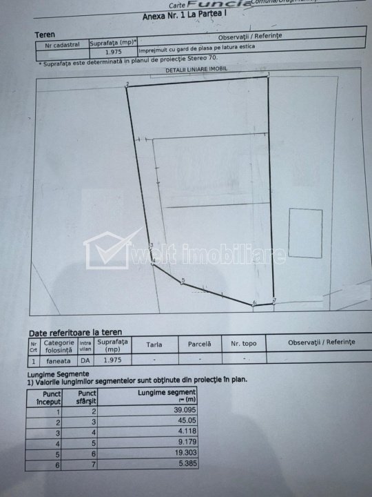 + 1 Exclusivitate Caracteristici Tip imobil Teren intravilan Teren pentru constructii civile Suprafata 660 m2 Front 16 m Vecinatati si puncte de interes in zona Roata Amenajare strazi (Asfaltate, Pietruite) Descrierea terenului De vanzare teren in suprafata de apoximativ 660 mp, foarte aproape de restaurantul Roata. Se va dezmembra dintr-o parcela de 1975 mp. Incadrarea terenului este AAPP, agrement pentru public. Potrivit pentru alimentatie publica, pensiuni, terenuri de sport, echitatie. Posibilitate amplasare pe teren a unei constructii provizorii. Utilitati in zona. Locatie frumoasa, langa padure, acces usor. Pret negociabil. ID Proprietate - P52593 Utilitati Utilitati in apropiere, Curent electric Numar vizualizari: 29 Actualizat: 2026-01-14 19:51:24