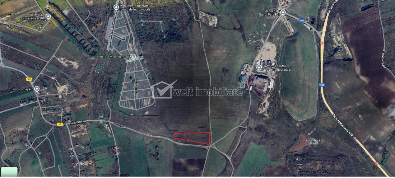 Teren intravilan arabil 5827mp, zona cimitir Mos Ion Roata - Sopor Cluj-Napoca, Sopor teren intravilan • 5827 m2 pret vanzare negociabil 185.000 € + 1 Caracteristici Tip imobil Teren intravilan Teren pentru constructii civile Suprafata 5827 m2 Nr. fronturi 1 Vecinatati si puncte de interes in zona cimitirul Sopor Amenajare strazi (Pietruite) Descrierea terenului Se vinde parcela de teren intravilan, situat dupa cimitirul Mos Ion Roata in Sopor. Teren cadastrat cu CF fara sarcini, situat in tarlaua 102. Perspectiva de investitie, pretul este negociabil. Accesul se face pe drum pietruit. Terenul este pe coasta dealului cu expunere Sud-Vest si orientare catre oras. ID Proprietate - P52250 Utilitati Utilitati in apropiere Numar vizualizari: 401 Actualizat: 2025-12-15 15:03:58