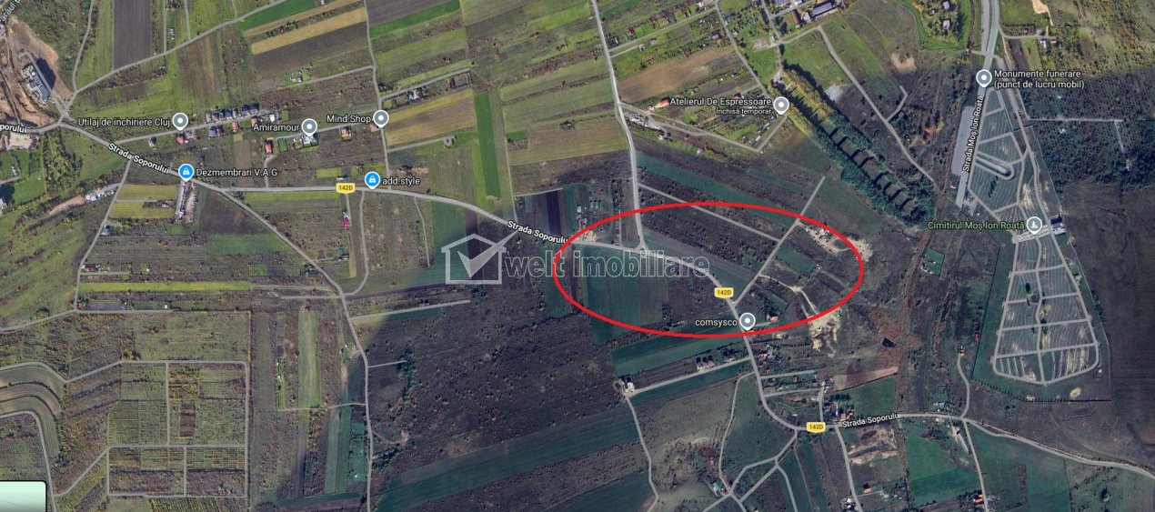 + 2 Caracteristici Tip imobil Teren intravilan Teren pentru constructii civile Suprafata 7975 m2 Front 250 m Nr. fronturi 2 Vecinatati si puncte de interes in zona cartier Sopor Amenajare strazi (Pietruite) Descrierea terenului Teren intravilan de vanzare in cartierul Sopor, la intersectia strazii Soporului cu strada care vine de la Selgros. Incadrare UTR Liu, POT 35%, CUT 0.9 Construibil pentru locuinte sau Servicii, unitati de cazare si turism, unitati de invatamant, alimentatie publica, mica productie Cadastrat, intabulat cu CF, fara sarcini ID Proprietate - P53418 Utilitati Apa, Canalizare, Gaz, Curent electric Numar vizualizari: 45 Actualizat: 2026-02-19 15:56:25
