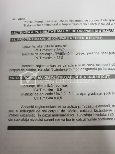 Caracteristici Tip imobil Teren intravilan Teren pentru constructii civile Suprafata 806 m2 Front 16 m Vecinatati si puncte de interes in zona Sigma Descrierea terenului Va propunem un teren cu potential in cartierul Zorilor. Are suprafata de 806 mp, front de 16. Terenul este plan si situat intr-o zona cu acces usor de pe drum asfaltat. Dispune de toate utilitatile. Incadrare urbanistica Liu, regim de inaltime S+P+E+M. Se poate construi locuinta semicolectiva cu doua unitati locative. Pe teren sunt constructii demolabile. ID Proprietate - P15227 Utilitati Apa, Canalizare, Gaz, Curent electric Numar vizualizari: 1825 Actualizat: 2019-06-27 14:53:41