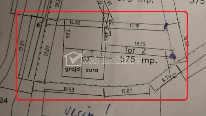 Beneficiaza de dezmembrarea unei curti si achizitioneaza 575 mp in Dezmir Dezmir teren intravilan • 575 m2 • front 17 m pret vanzare negociabil 37.375 € + 1 Vandut Caracteristici Tip imobil Teren intravilan Teren pentru constructii civile Suprafata 575 m2 Front 17 m Nr. fronturi 1 Latime drum acces 8 m Vecinatati si puncte de interes in zona Scoala I-VIII Dezmir, parc sportiv, CTP M43 Amenajare strazi (Asfaltate), Iluminat stradal, Mijloace de transport in comun Descrierea terenului Cauti un teren pe care sa construiesti ceva cochet? Welt Imobiliare va aduce in atentie dezmembrarea unei curti si vanzarea unei parcele de 575 mp, in Dezmir. Terenul, cu acces din drum asfaltat, beneficiaza de toate utilitatile (apa, canal, gaz, curent) si totodata are construita o sura/poiata care poate asigura material (piatra) pentru viitoarea constructie si amenajari. ID P26026 ID Proprietate - P26026 Utilitati Utilitati in apropiere, Apa, Canalizare, Gaz, Curent electric Numar vizualizari: 1759 Actualizat: 2021-05-07 12:24:11
